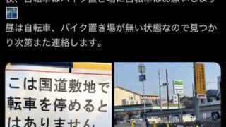 エッヂ ラーメン二郎さん、道路を無許可で駐輪場にしてしまい国から怒られるwww