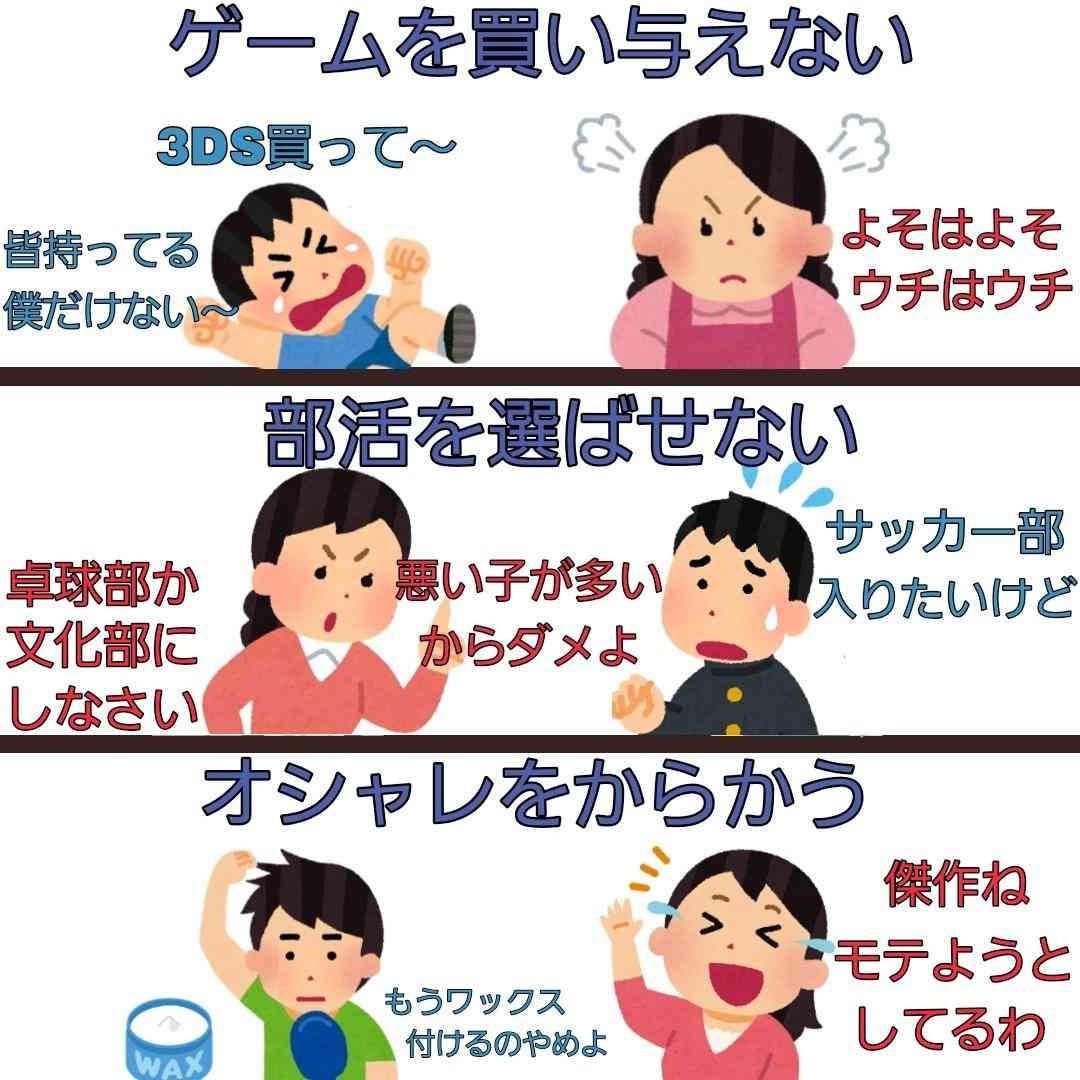 女さんっていい歳こいても人のどうでも良い癖とか服装とかまで小馬鹿にする生き物だから我が子のことも平気で小馬鹿にする親は多いだろうな