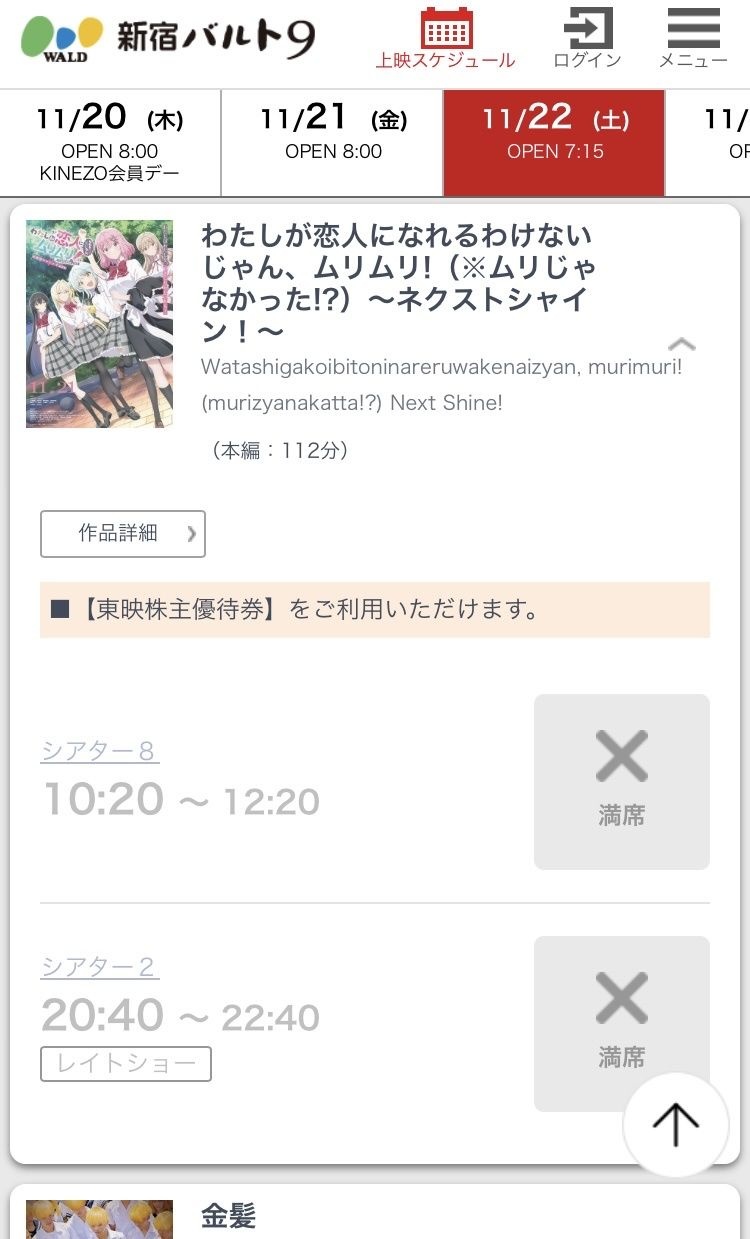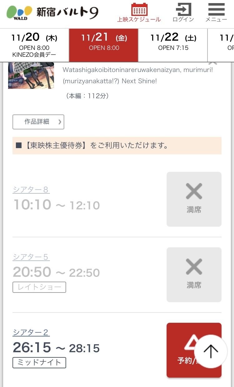 - 朝10時から映画『わたしが恋人になれるわけないじゃん、ムリムリ!(※ムリじゃなかった!?)~ネクストシャイン!~』見ようと思わんわ