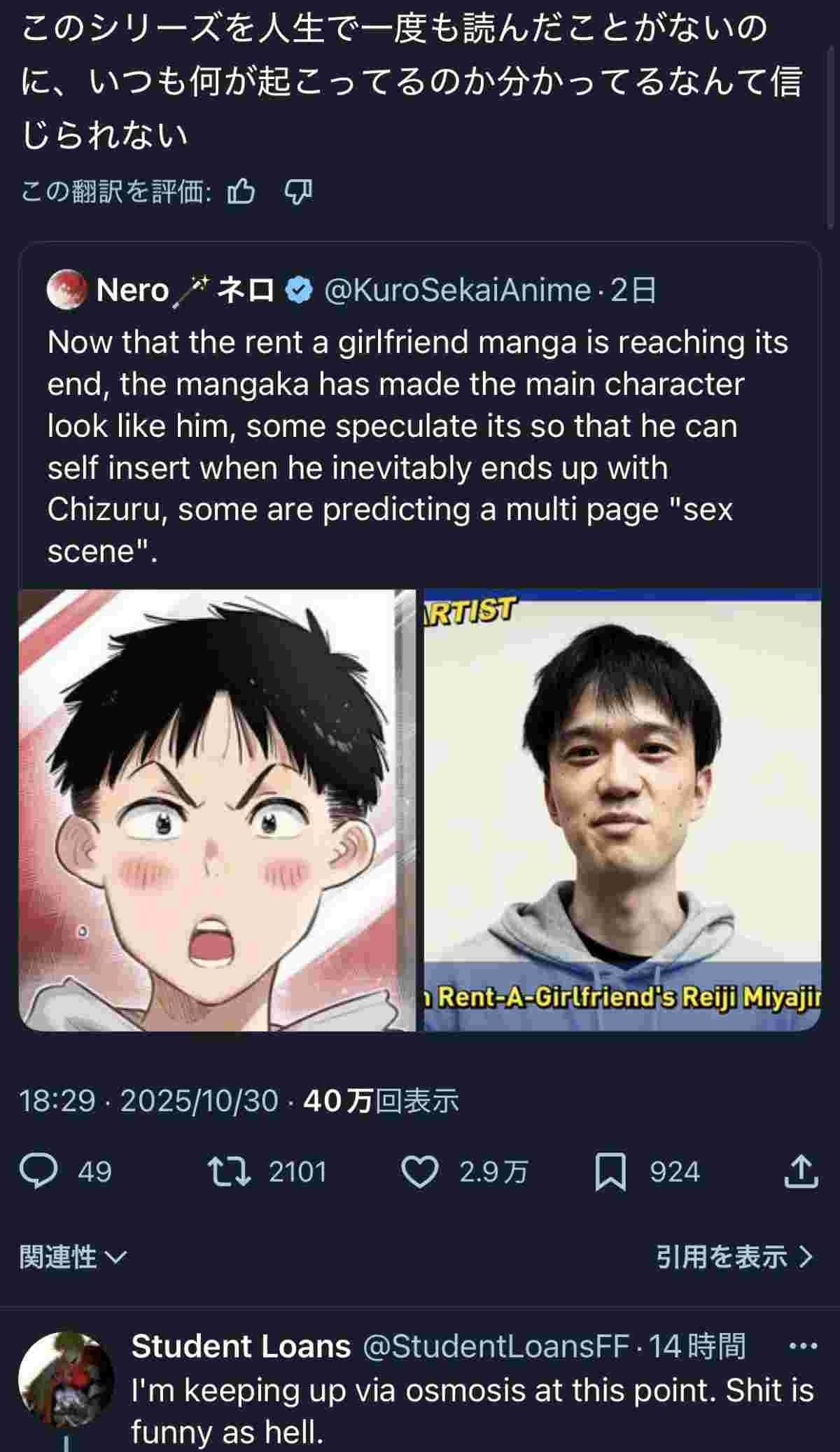 【画像】「彼女、お借りします」の作者、まあまあ気持ち悪いポストをしてしまう