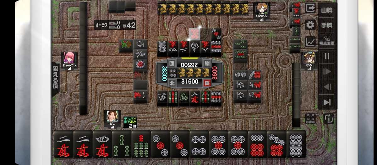 - ドラポンしたら下家と上家はビビっておりそうやし対面と一騎討ちや!