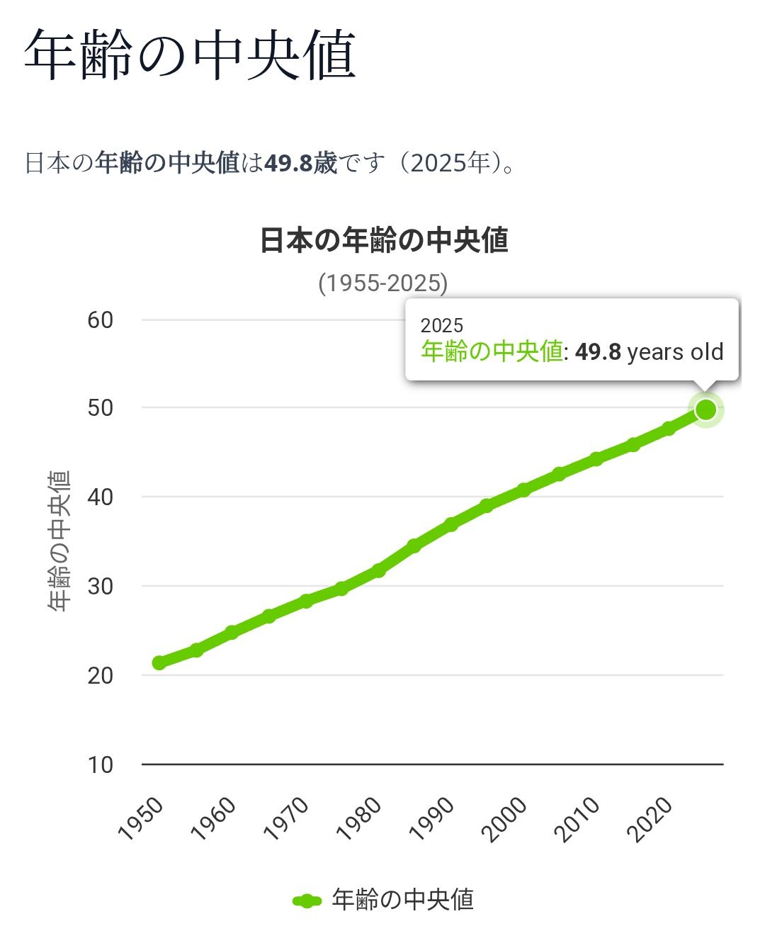日本の年齢中央値、50歳www