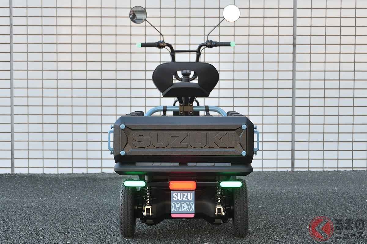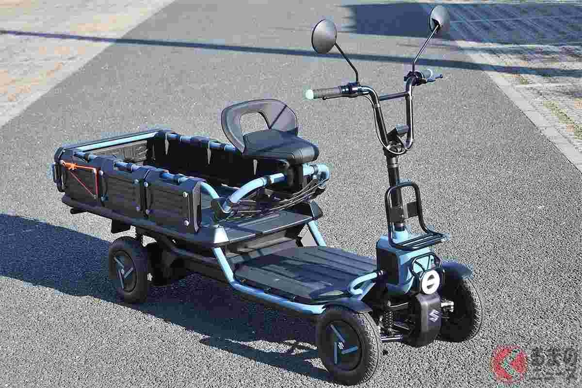 - スズキの「免許が要らない“チビ軽トラ”!?」に反響殺到! 「本気で欲しい」「免許返納した祖父母にピッタリ」の声も! 1人乗り超小型ボディ×4輪走行で安全な「スズカーゴ」が話題に!