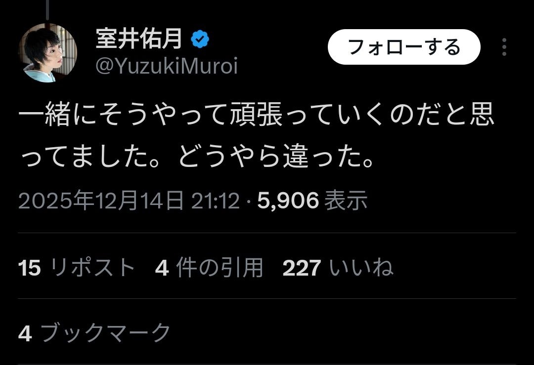 室井は過去を乗り越えて味方を増やしていこうと頑張ってるのになあ - 56 : 2025/12/14(日) 22:00:57.761 ID:j6G3DKBLN