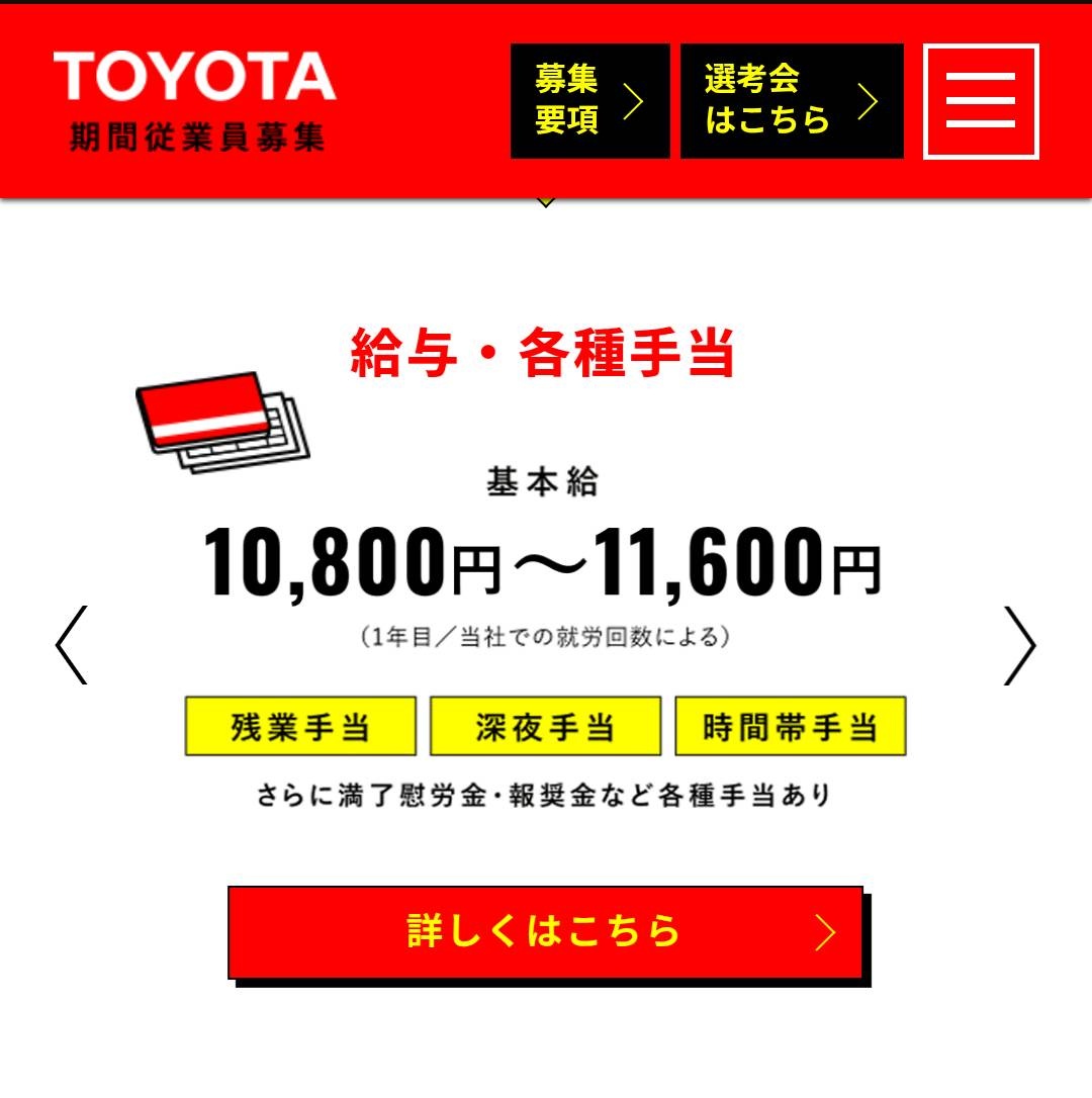 初年度は祝金有って2年目以降は日給と満了金上がるからトヨタでも実質時給2500円くらいあるで