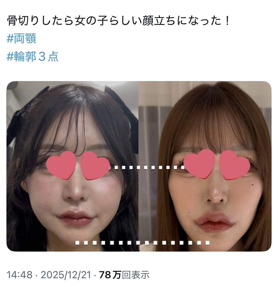【画像】Twitter女さん、整形で女の子らしい顔立ちになる