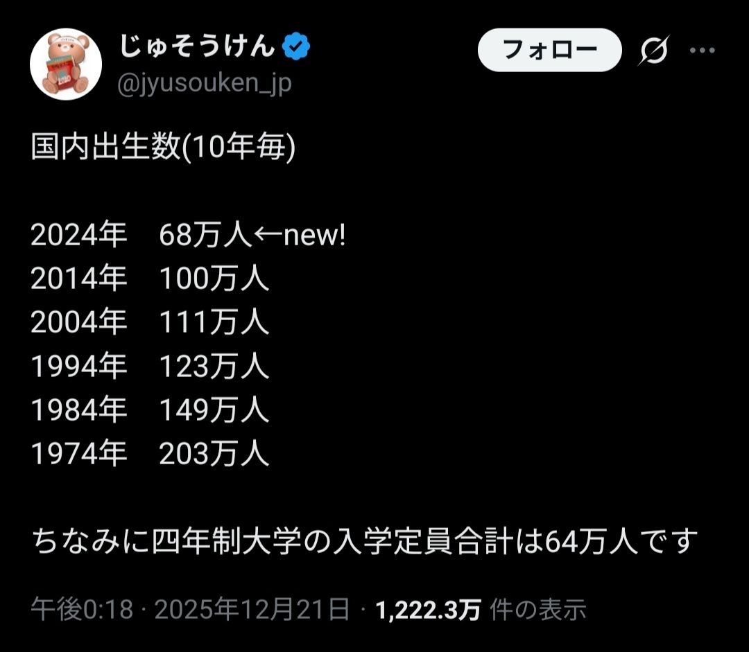 もう衰退局面入ったんやから解決不可能やと勝手に思っとる - 212 : 2025/12/25(木) 11:15:02.265 ID:mDj3Qi9Ep