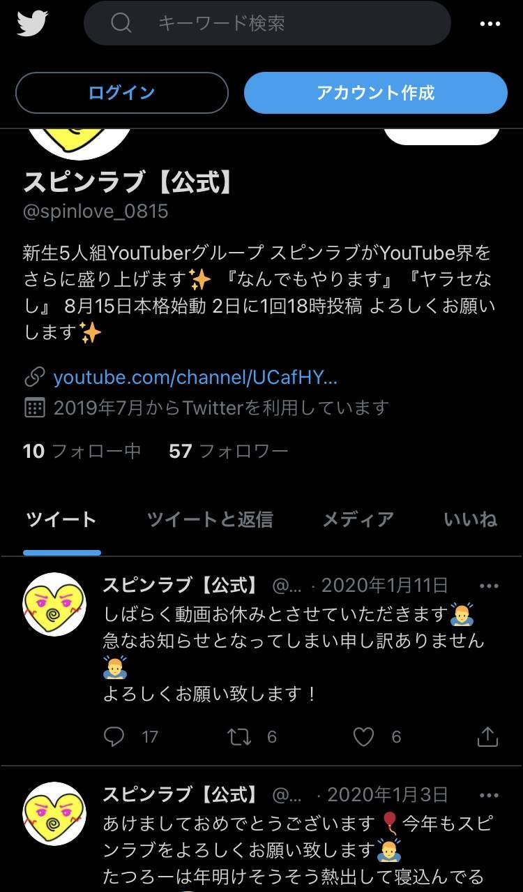 - スピンラブのフォロー欄