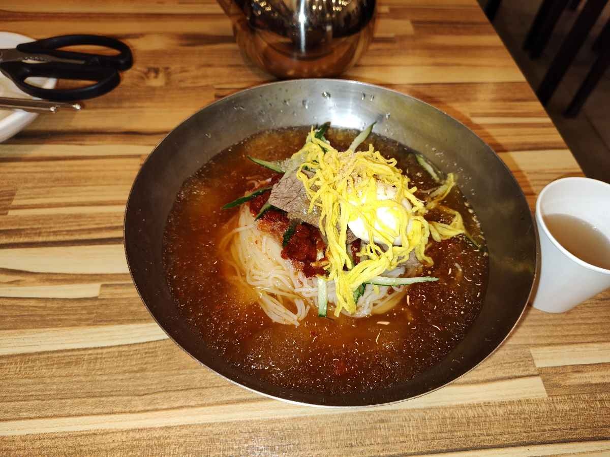 本場でもこんな感じなんやな、日本でしか食ったことないけど韓国の冷麺って麺がなんか違うわ