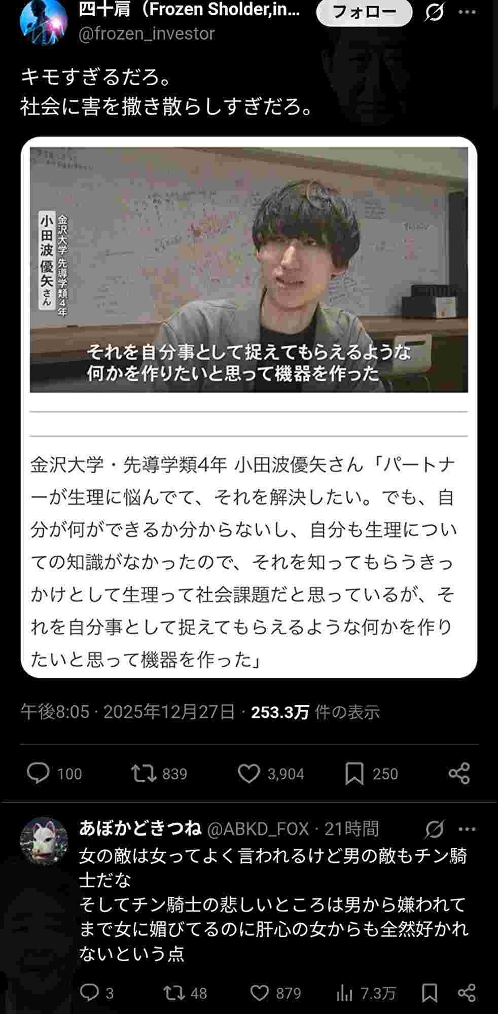 女が憎くてたまらない可哀想な人たちが激怒している - 6 : 2025/12/29(月) 10:21:24.990 ID:5M8EbI8aF
