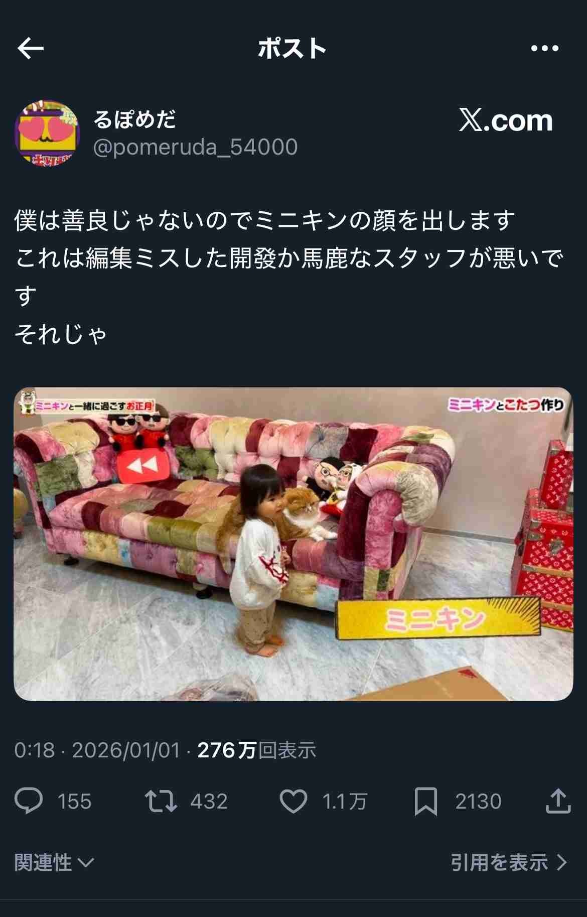 いや可哀想なのはミニキンやろ😅 - 13 : 2026/01/01(木) 09:47:26.574 ID:mkuP6u2RF