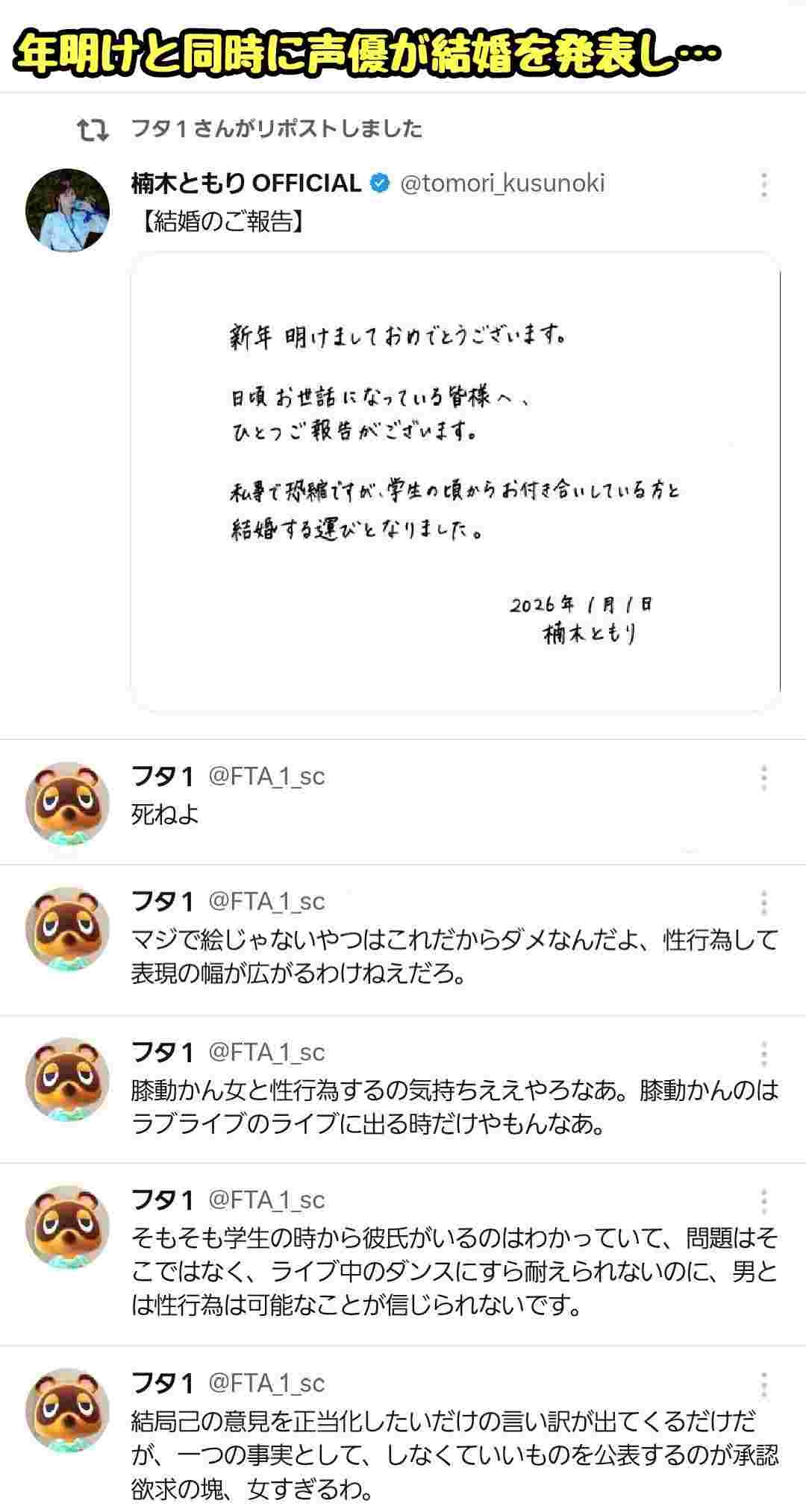 声優オタクさん、楠木ともり結婚で豹変するwww
