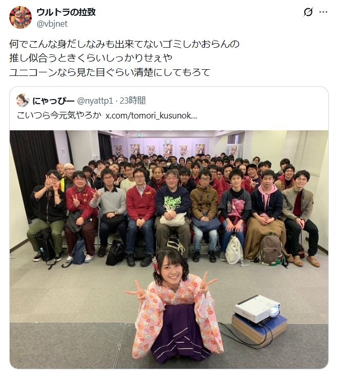 - 正月から何の罪もないオタクの容姿叩きしてるこいつらのほうが気持ち悪いわ