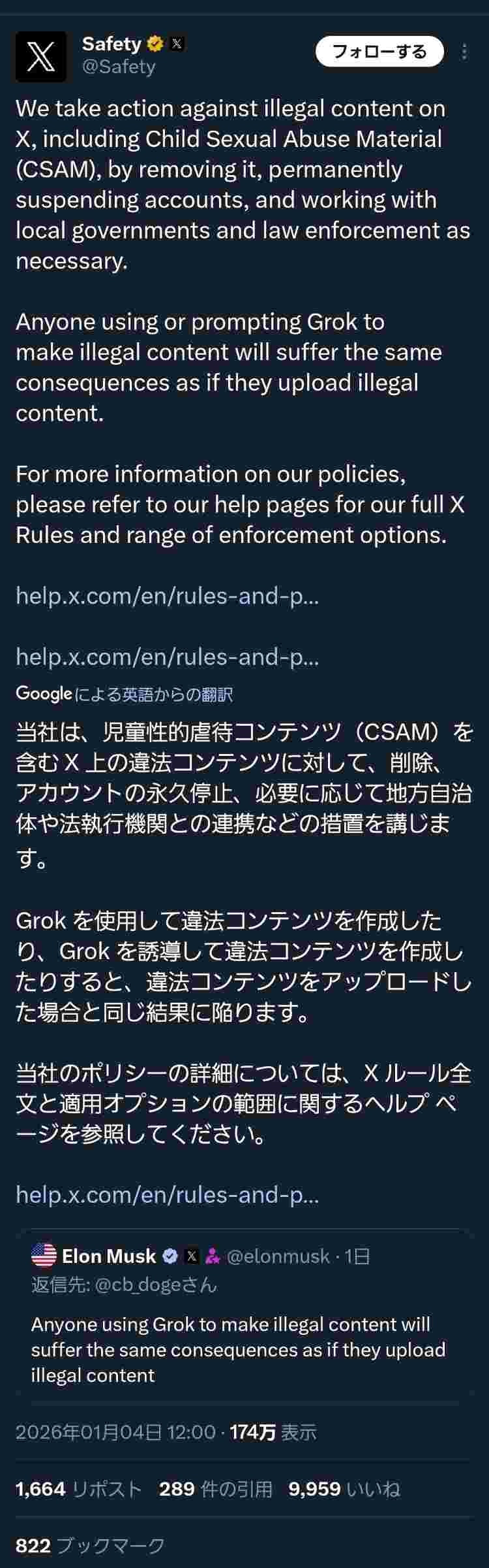 X、grokを使って児童ポルノを生成したユーザーを法執行機関に情報提供www