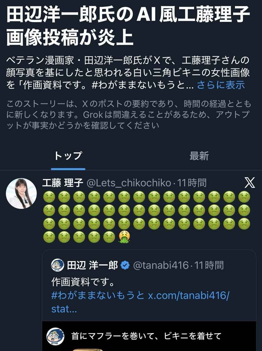 - 漫画家の田辺洋一郎氏“AIセクハラ”加工写真投稿を削除し謝罪「アイドルとの距離感を見誤った傲慢さ…」