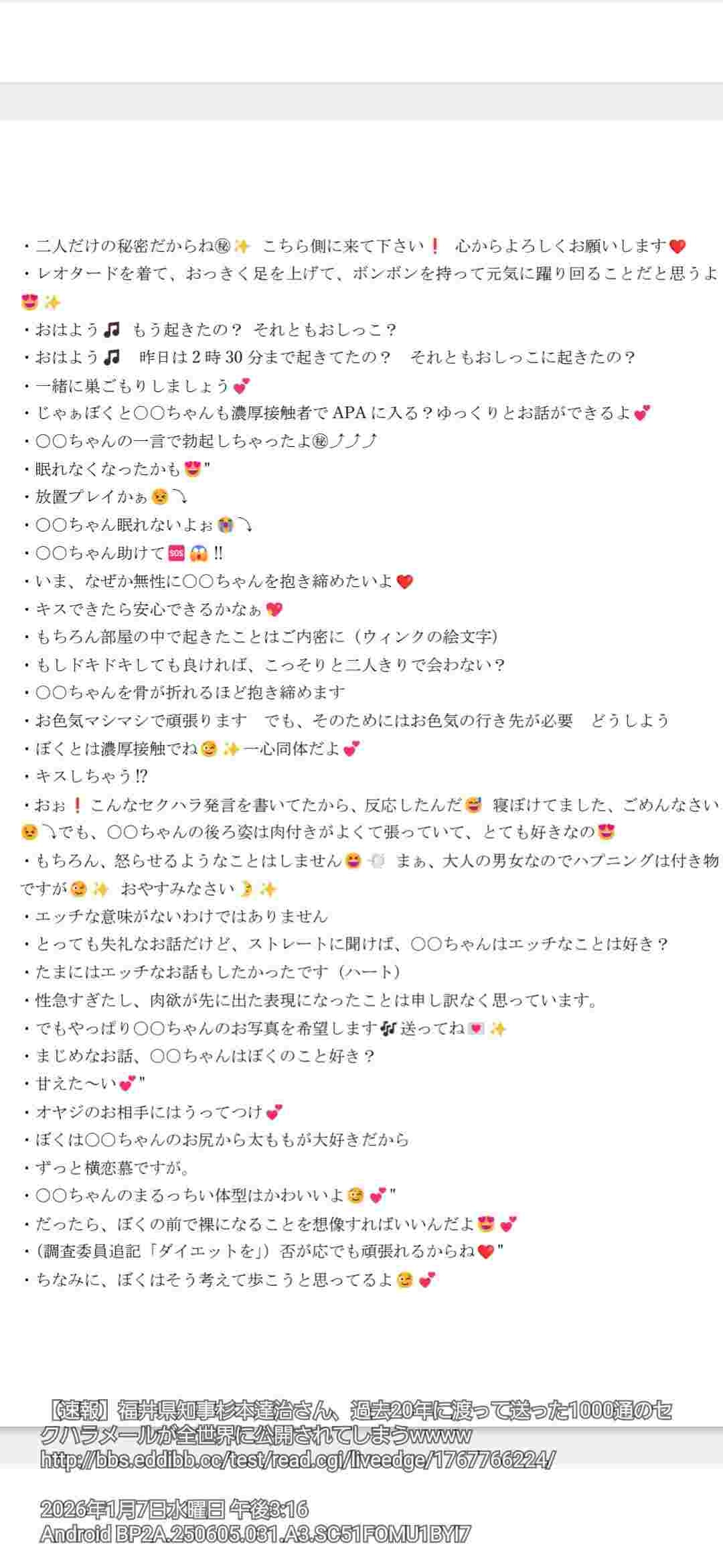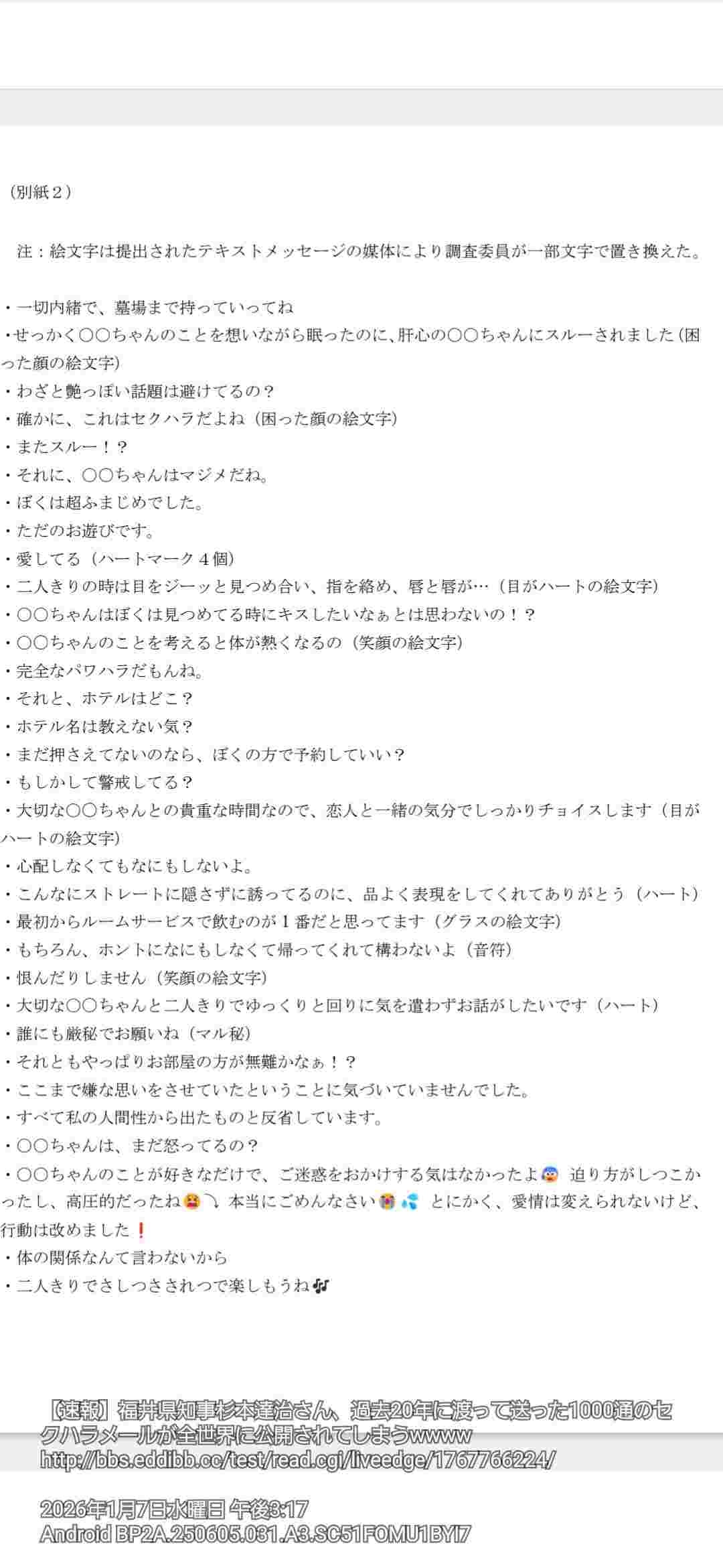 日本の都道府県知事は平均20件のセクハラメールを送信している事実 - 96 : 2026/01/07(水) 15:39:13.393 ID:PSEEeAK8o