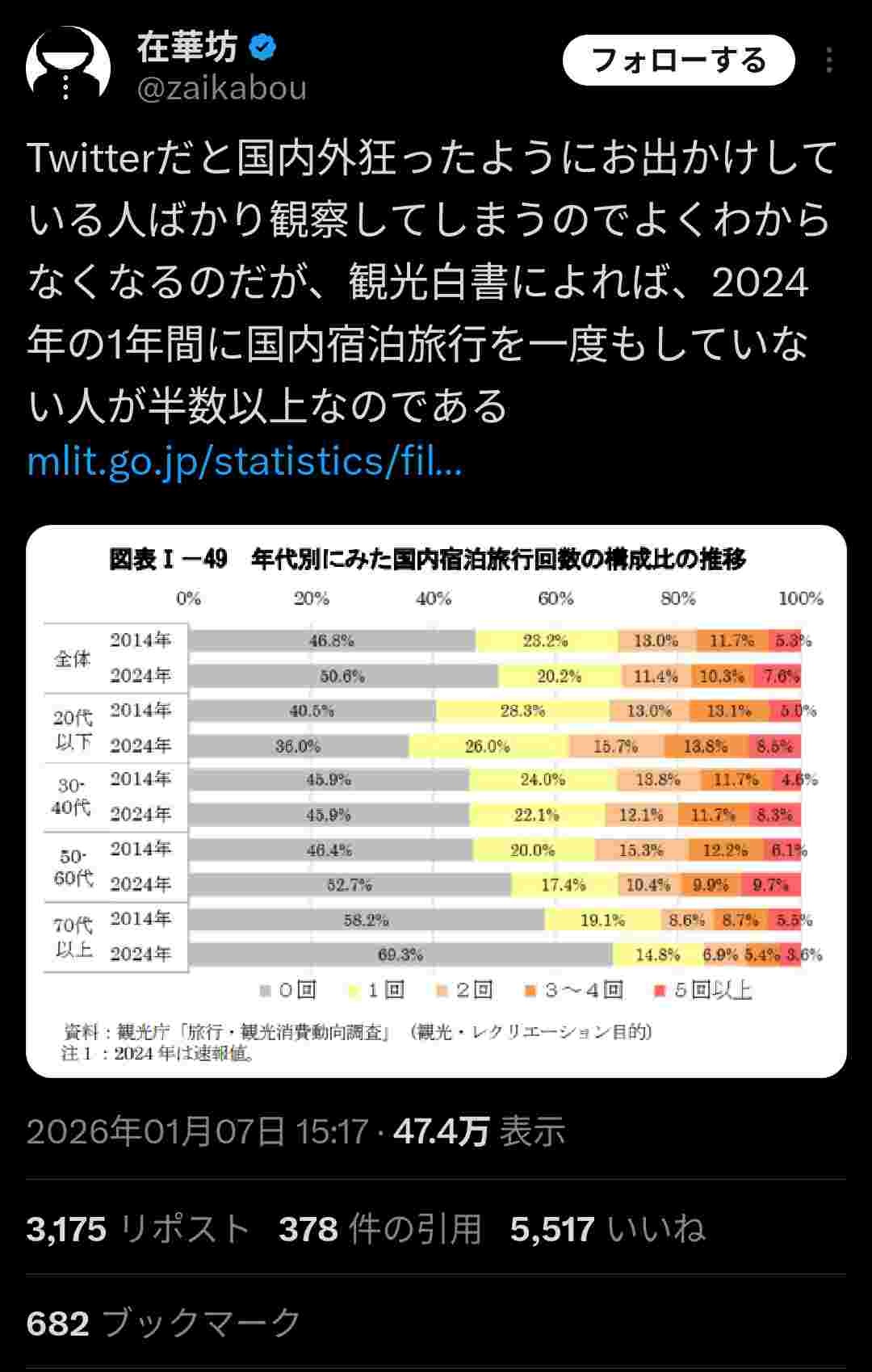 約半数の日本人が「1年に1回も旅行しない」←これマジ?