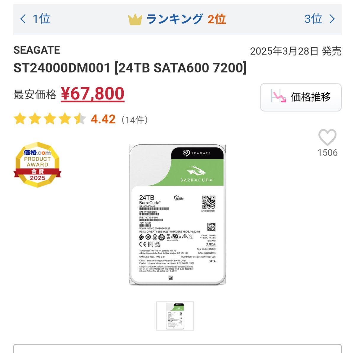 2TBでよかったのに在庫なくて泣く泣く8TBにしとのに - 43 : 2026/01/08(木) 20:53:21.563 ID:7N+m9ga70