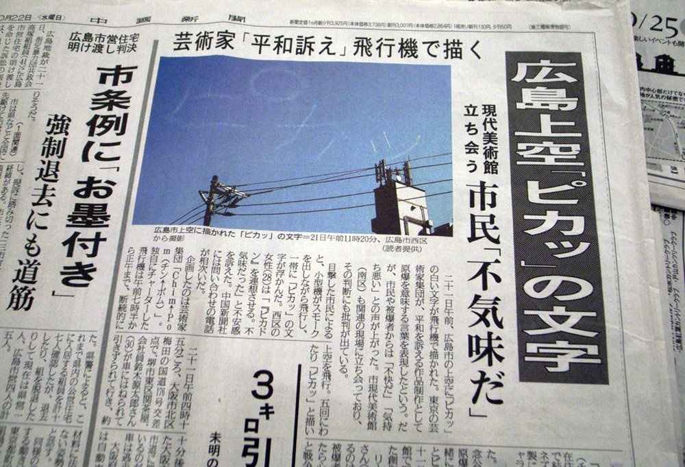 芸術家集団、飛行機で広島上空に「ピカッ」の文字を描き炎上www
