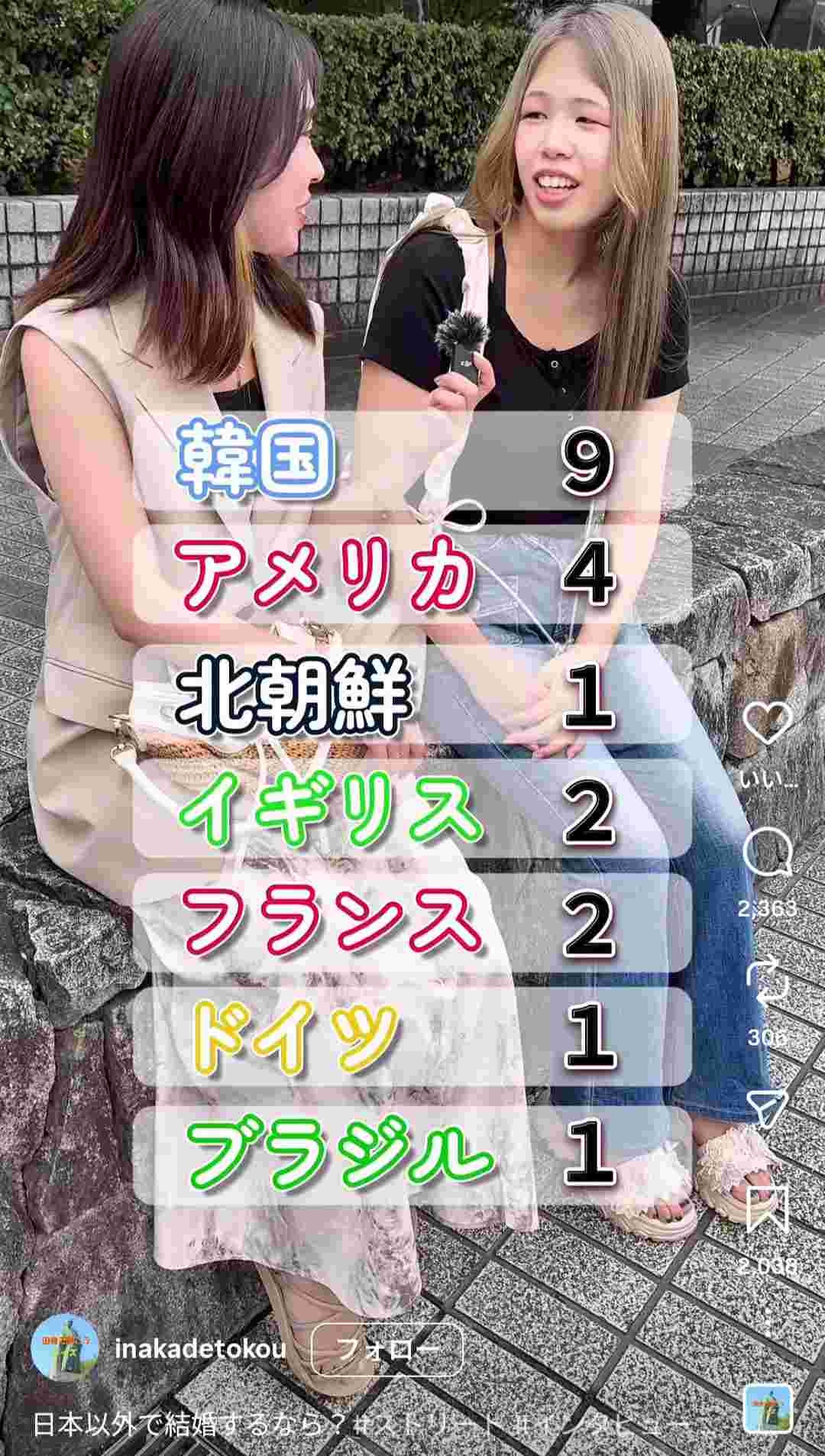 【画像】Z世代女子「日本人以外で結婚するなら?か…」←とんでもないことになる…