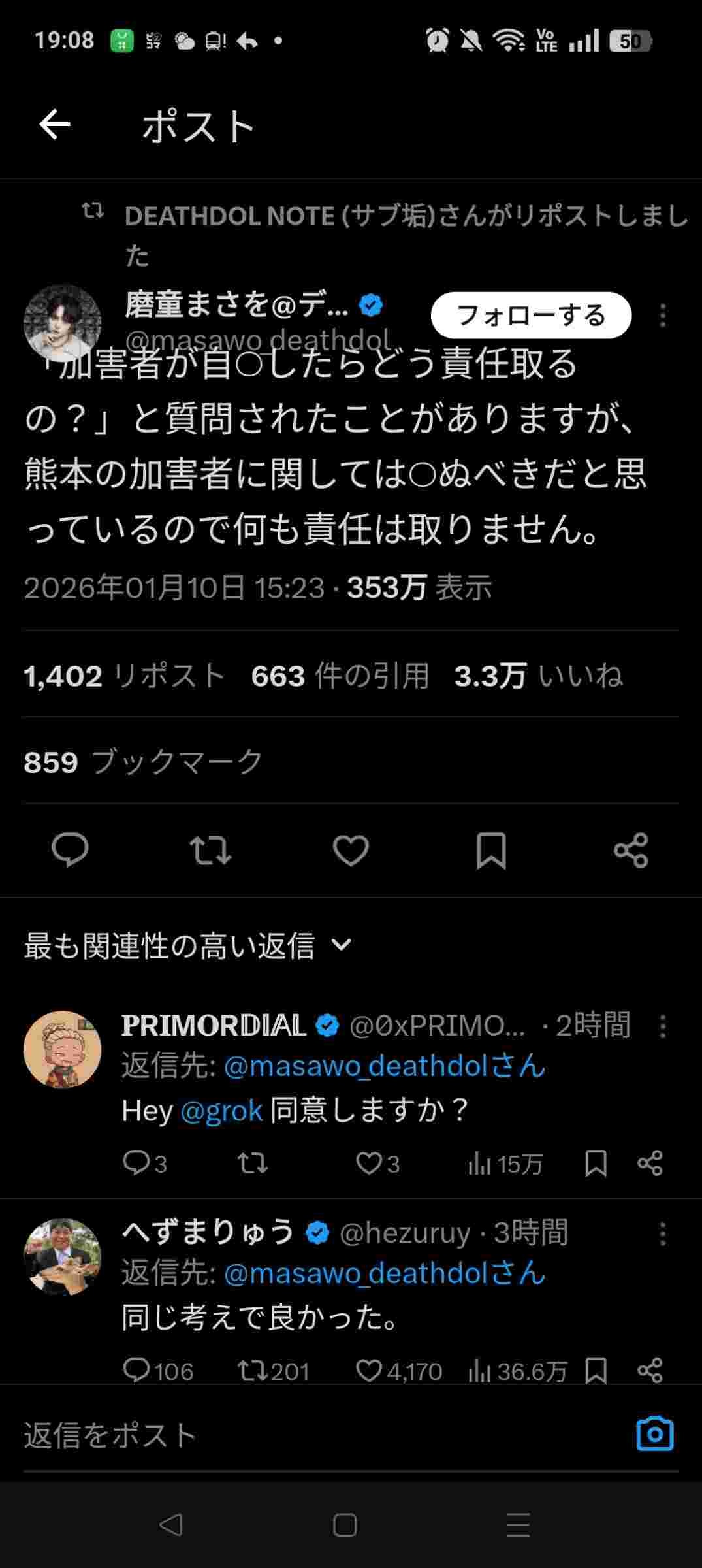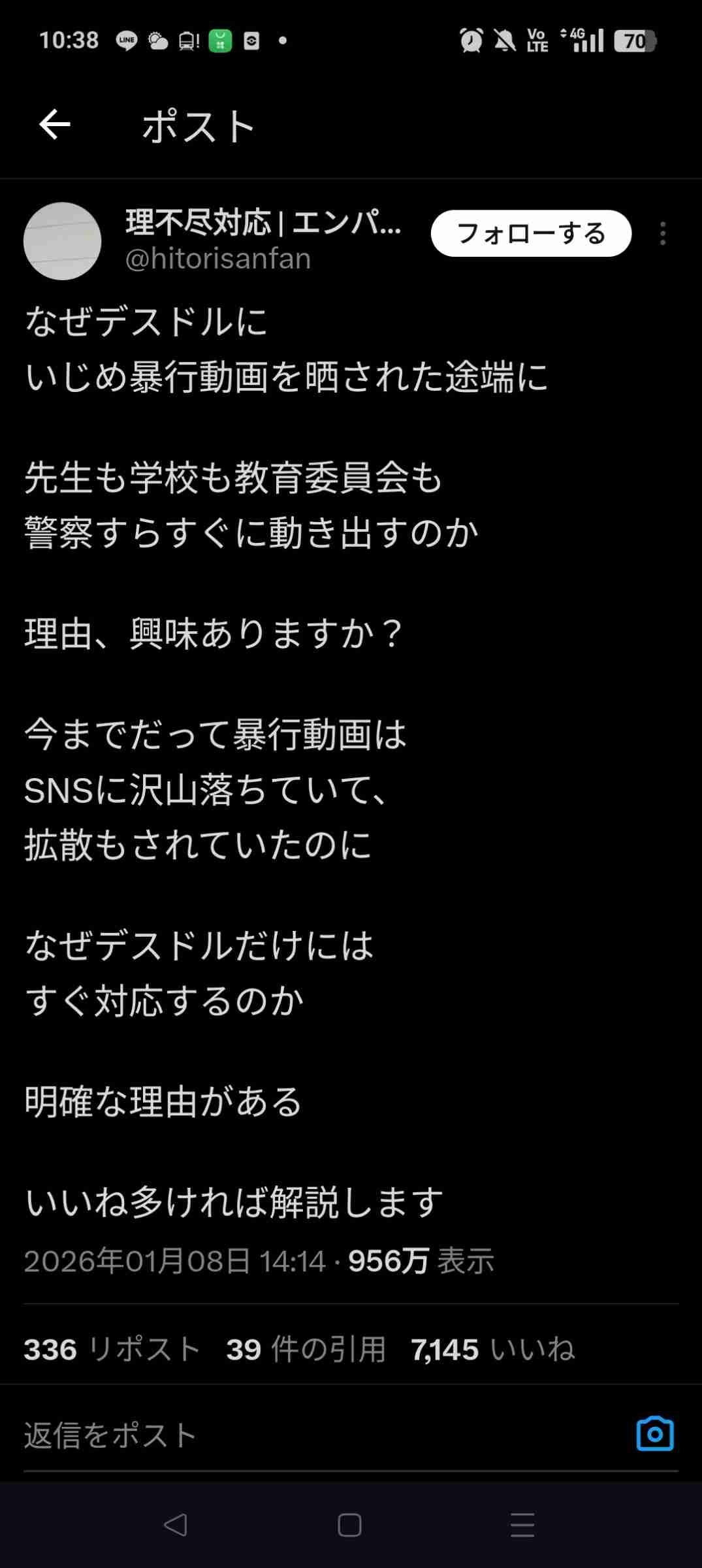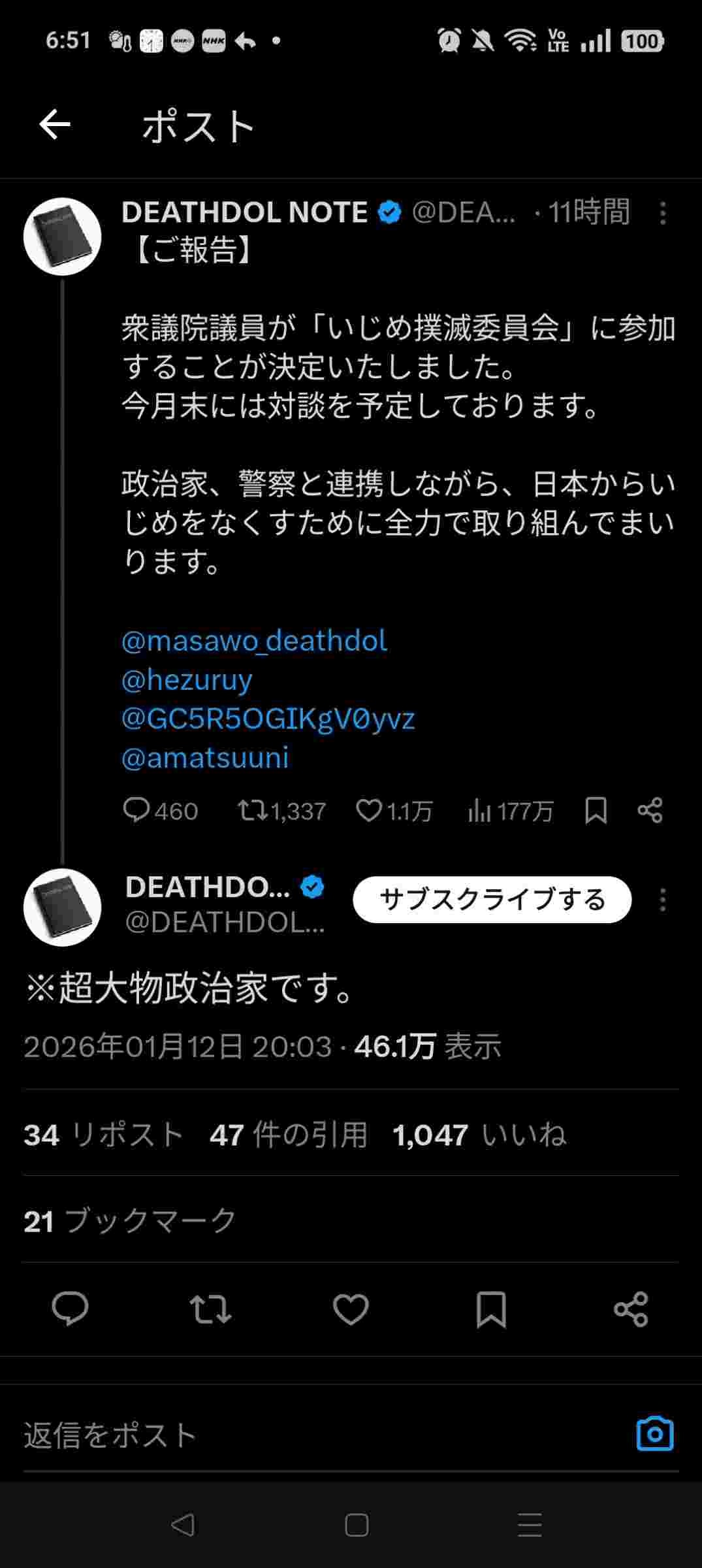 デスドル「俺の自民党と関わりのあるパパは警察とのコネクションがあるから言うこと聞く。ちなみに俺は加害者晒ししてるけど加害者はジサツするべきだと思う」 - 16 : 2026/01/13(火) 11:00:19.135 ID:q.J2RTWh1