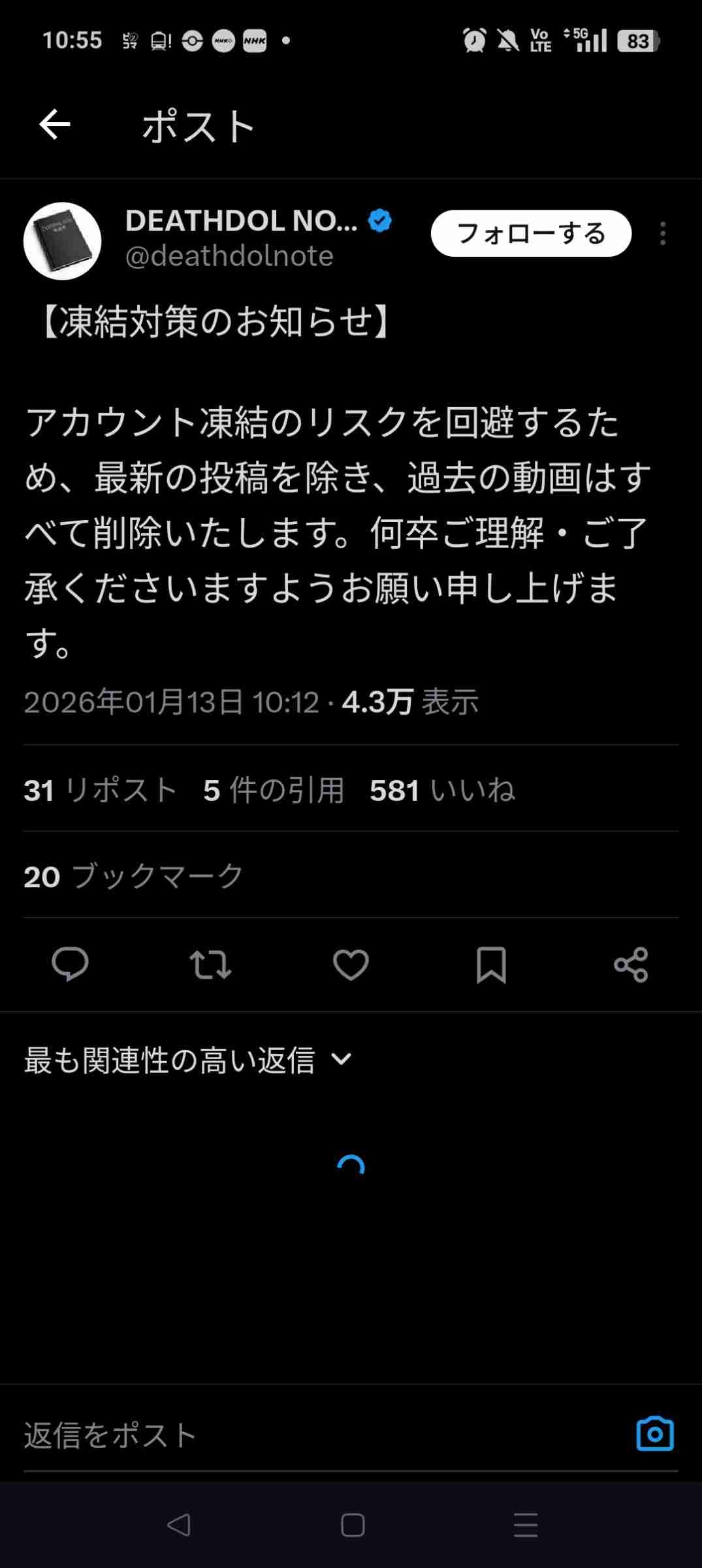 デスドルにすべての責任を擦り付けてるぞ>>54 - 136 : 2026/01/13(火) 11:24:39.232 ID:5h.ZmJJyQ
