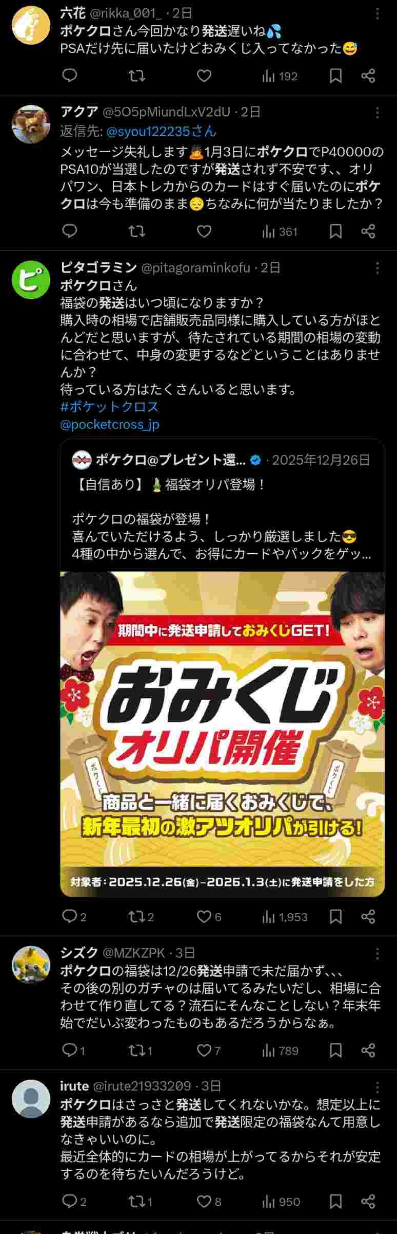 - ちなさらば青春の光が宣伝してるオリパサイトは2-3週間発送してなくてユーザーが暴れそうになってる
