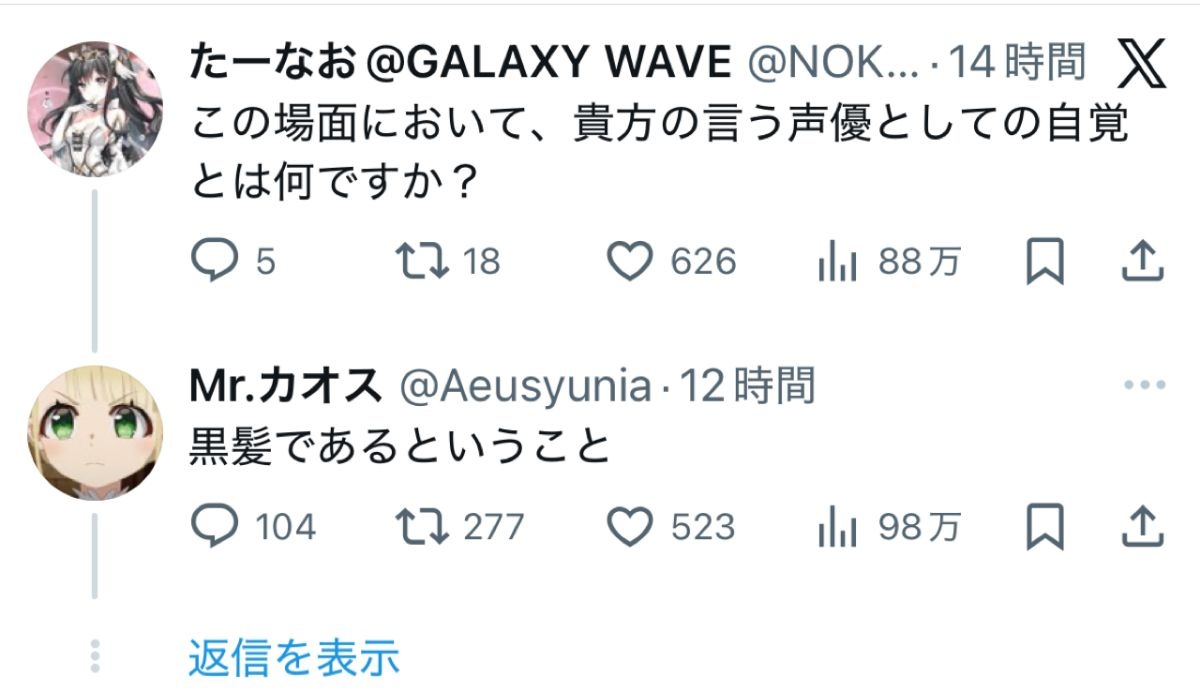 声優ヲタク「声優が髪色変えるなんてあり得ない!声優としての自覚が足りない!」→大炎上🔥