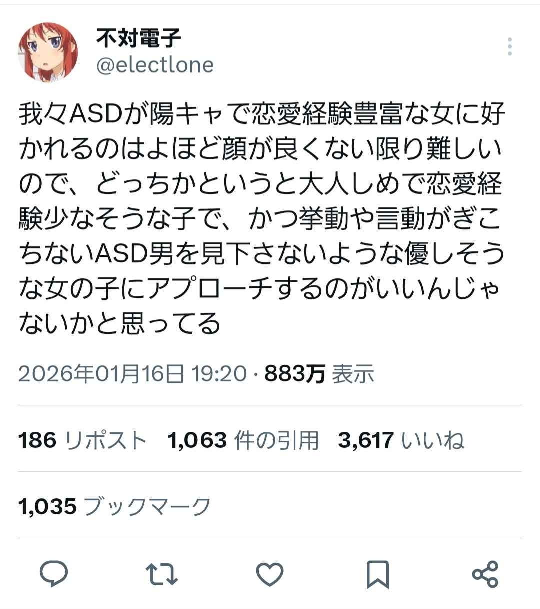 ASD男子「我々ASD達は大人しめで恋愛経験少なそうな子で、ASD男を見下さないような優しそうな女の子にアプローチするのが良いと思ってる」