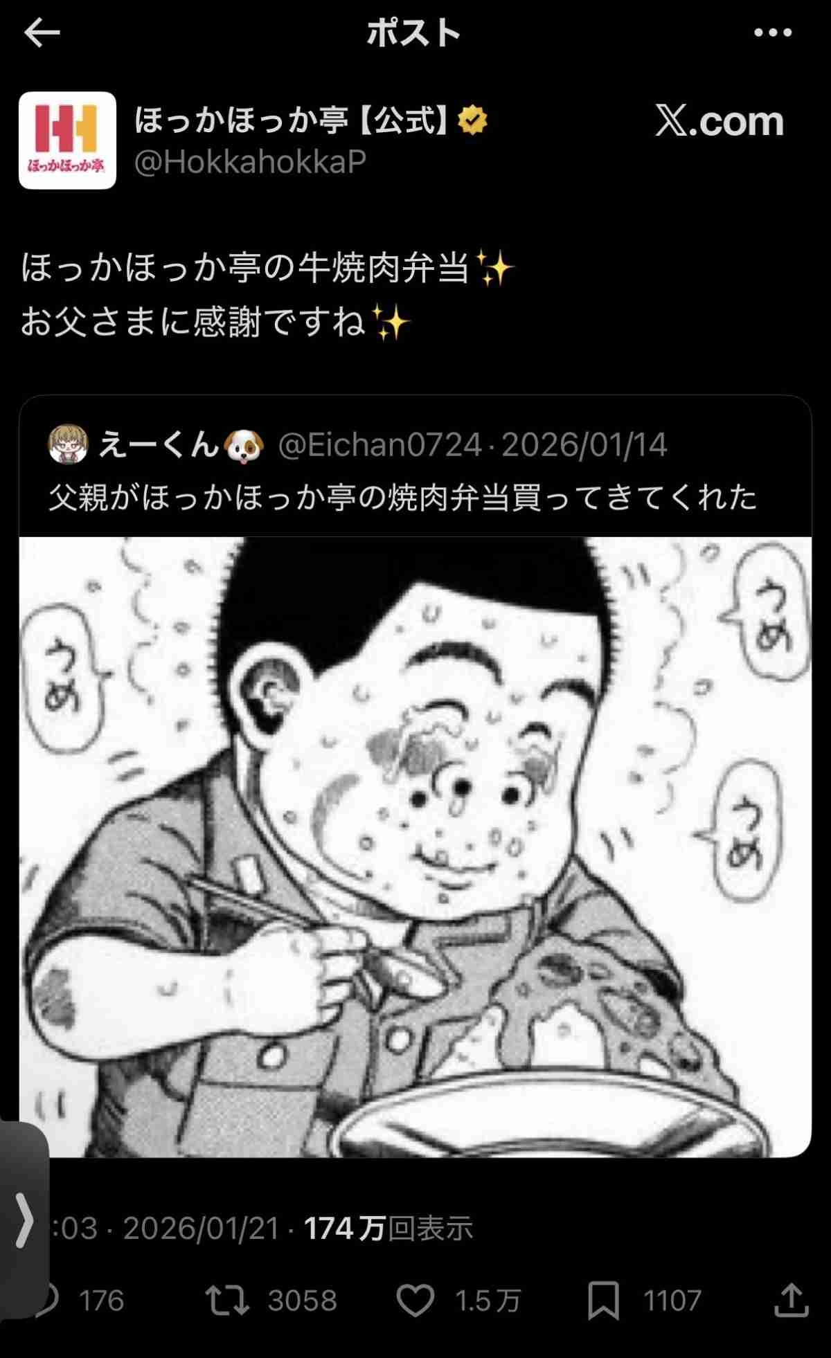 ほっかほっか亭おいしいみたいなリプをありがとうって引用する公式垢なんだから