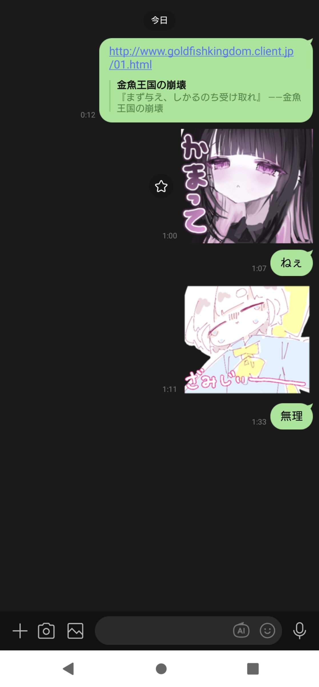 - こんなメッセきたらキモすぎる