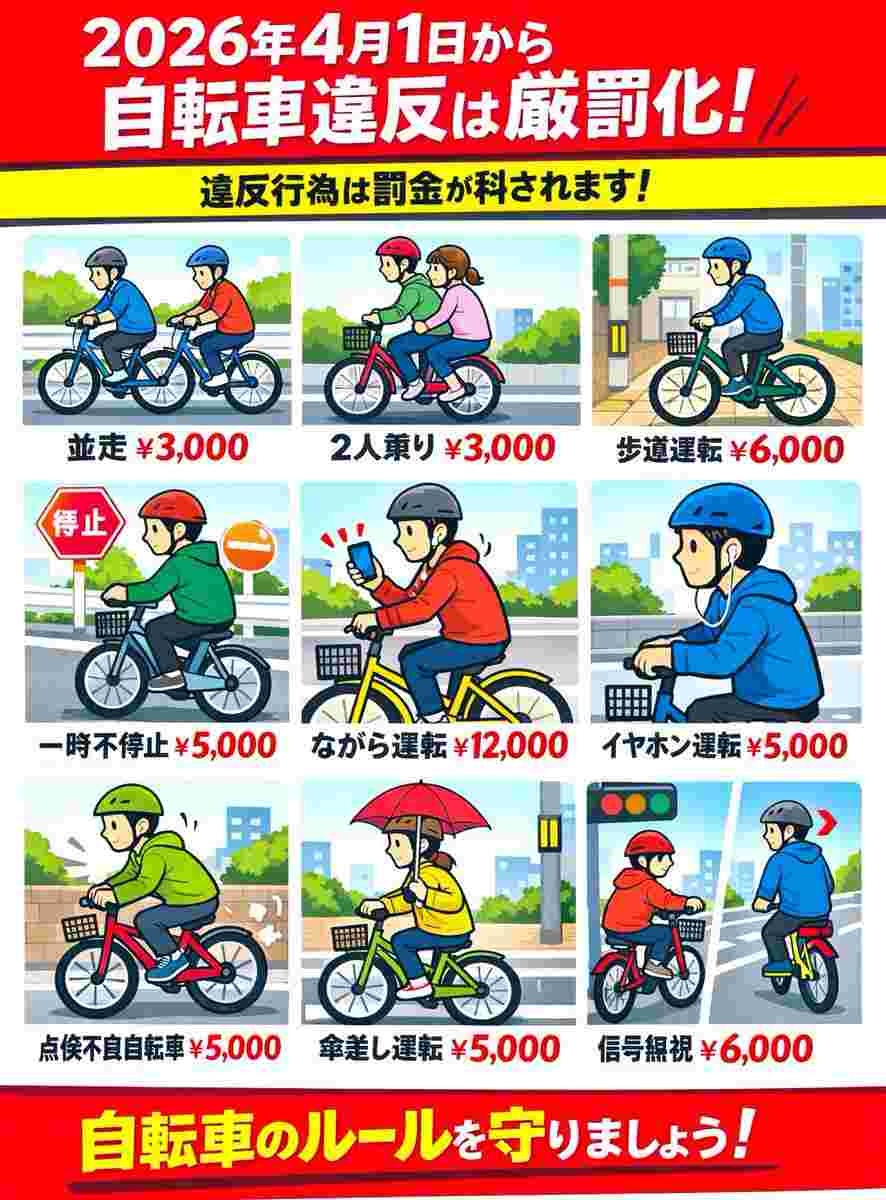 自転車乗車→罰金30000円