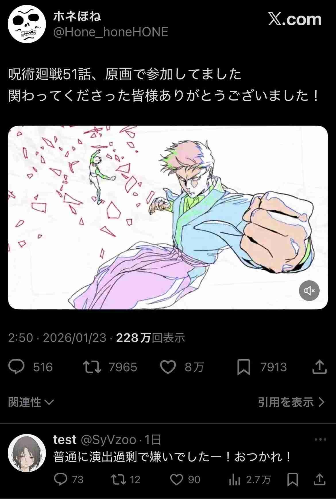 - もうこういう風に叩かれるだけだから呪術に関わってるアニメーターはポストしないほうがええやろ