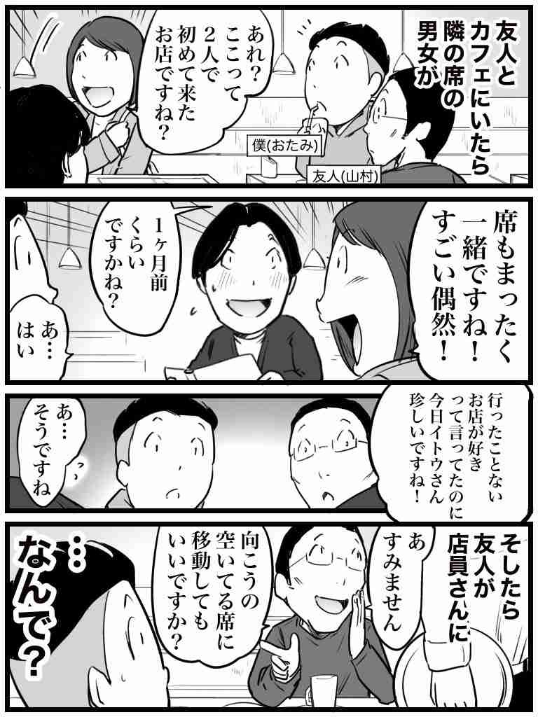 こんな席が近いカフェで告白する予定がそもそもあるんかとか来た瞬間隣が席移動する気持ち悪さとか無視されすぎやわ