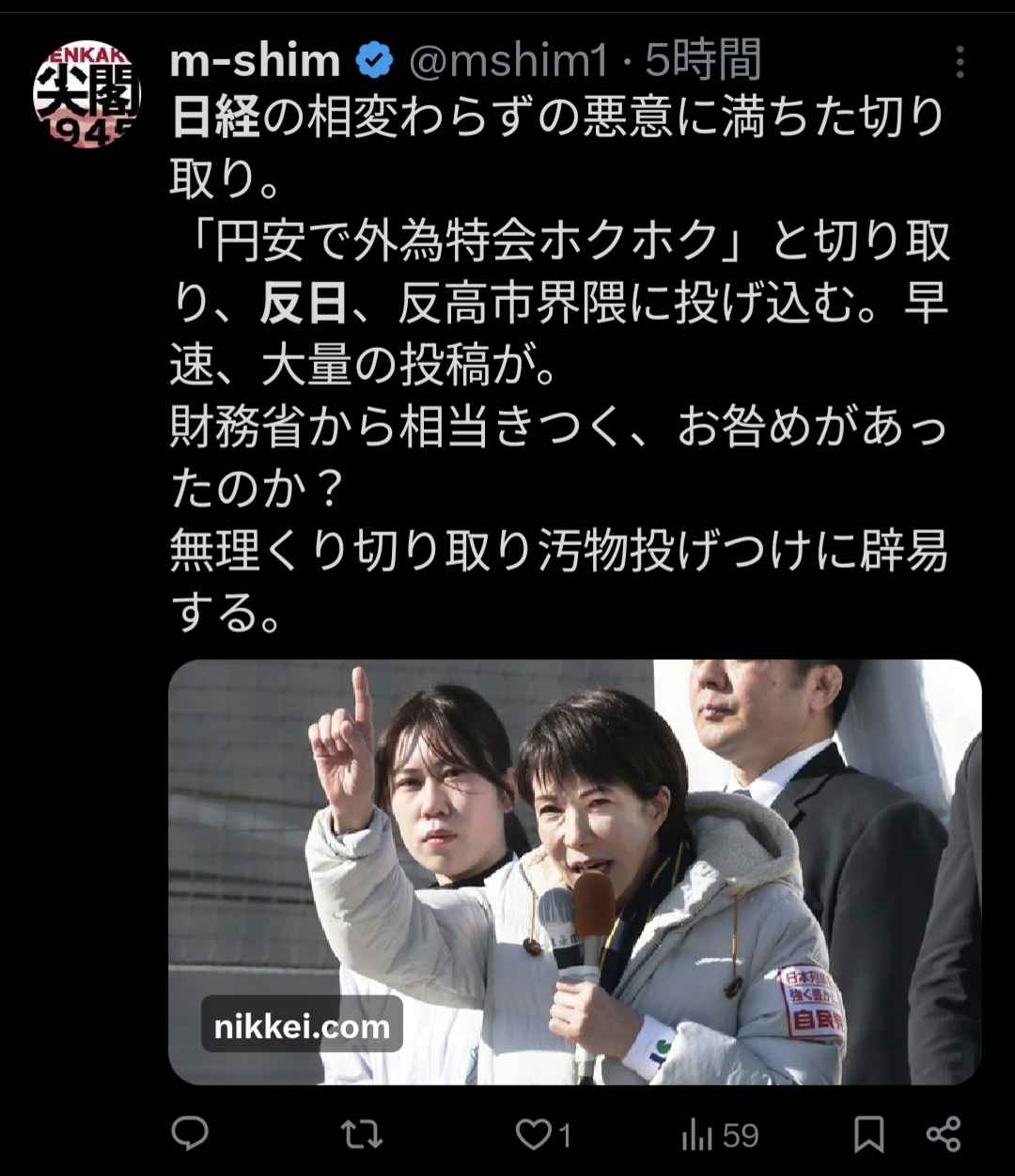 日経「高市、円安ホクホク発言」高市「嘘はやめて!」日経「嘘ついてるのはお前だろ!全文公開する!」