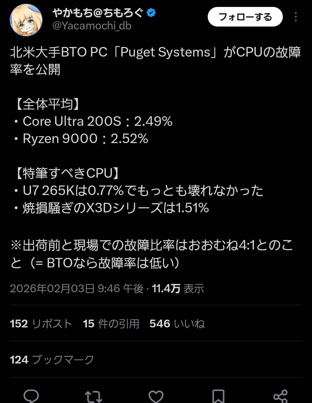 パソコンの大先生「CPU、特にAMD製は壊れない」←大嘘だった