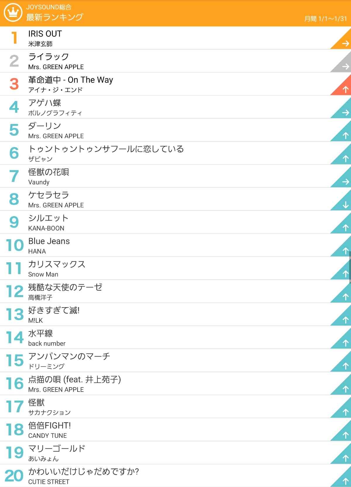カラオケJOYSOUND最新ランキングTOP20がこちらwww