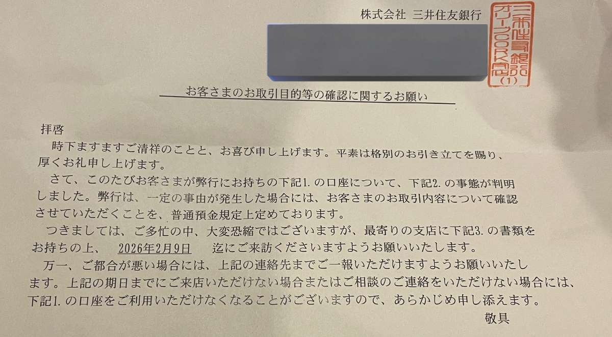 ある日いきなり口座凍結