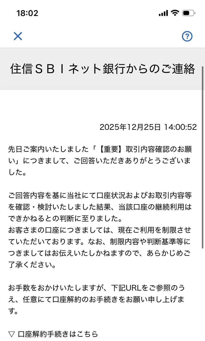 ワイ、オンラインカジノに銀行振込し、住信sbiと三井住友銀行永久出禁&口座凍結
