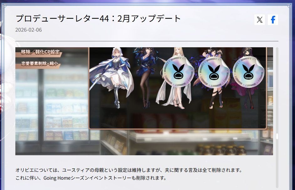 - ユーザーの嫉妬が凄いから他の恋愛描写のあるキャラも変更される模様