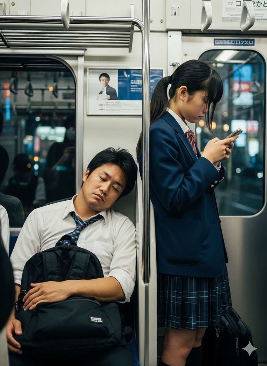 【画像】通勤電車で席に座ってたら後からやってきたJKがこういう風になる状況わかるやついる???
