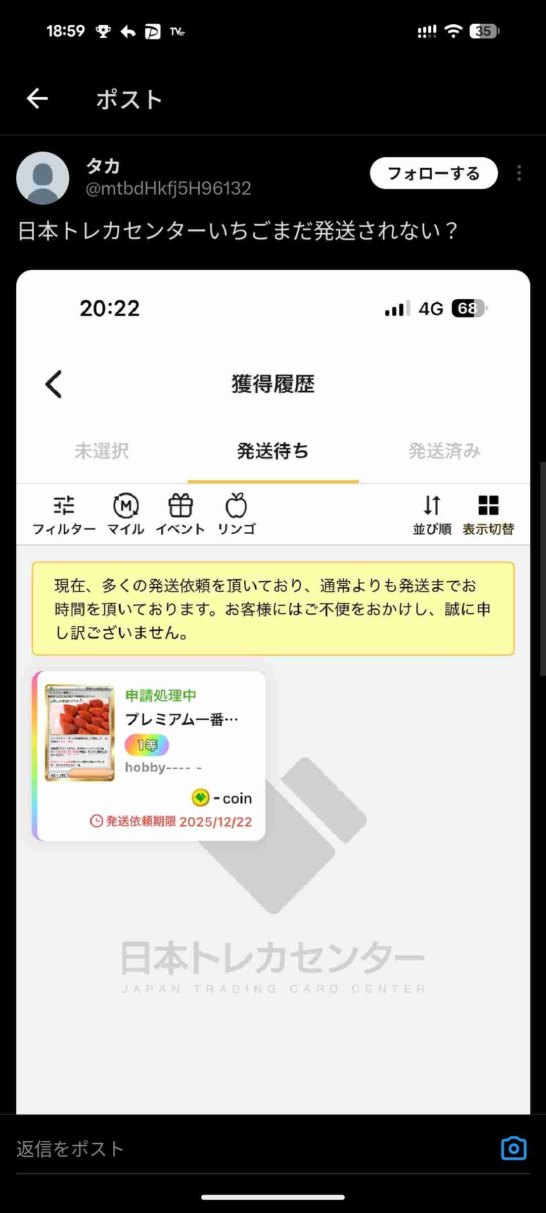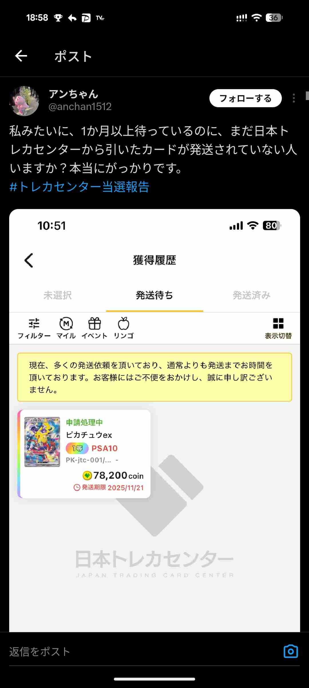 発送されねぇってめっちゃ言われとるしな