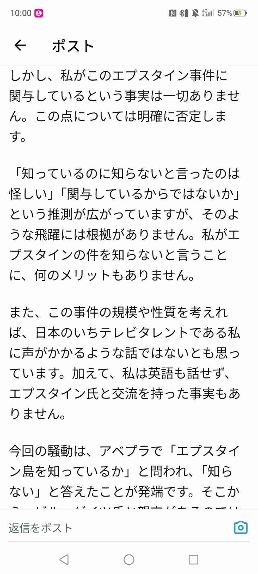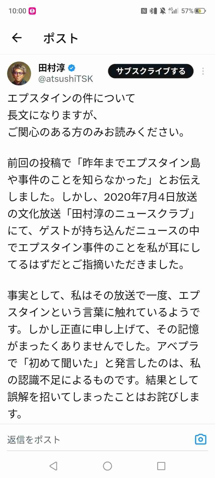 田村淳さん、エプスタイン島の嘘がバレて謝罪風の脅迫をする