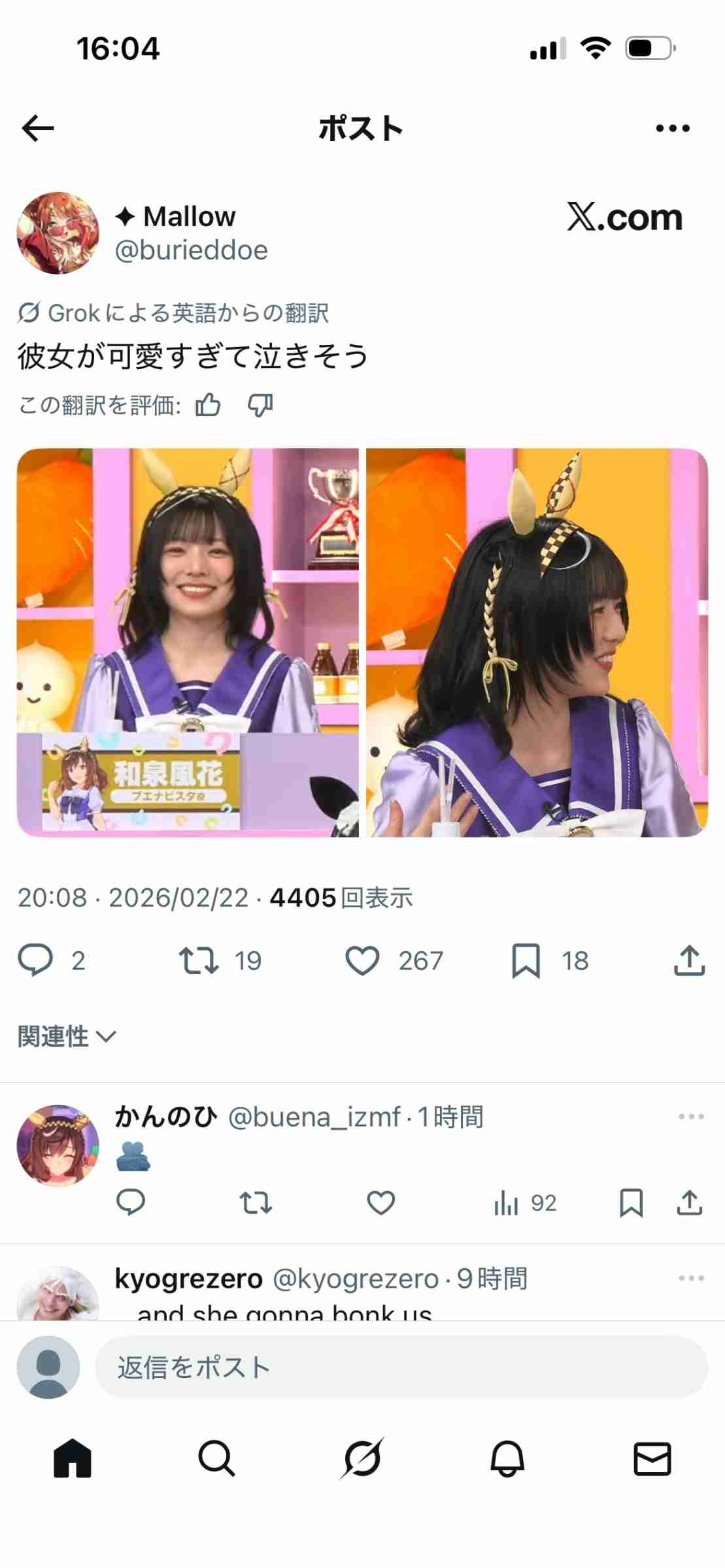 ぶっちゃけブエナビスタのが可愛い - 60 : 2026/02/23(月) 16:47:21.280 ID:2/zfuVy4X