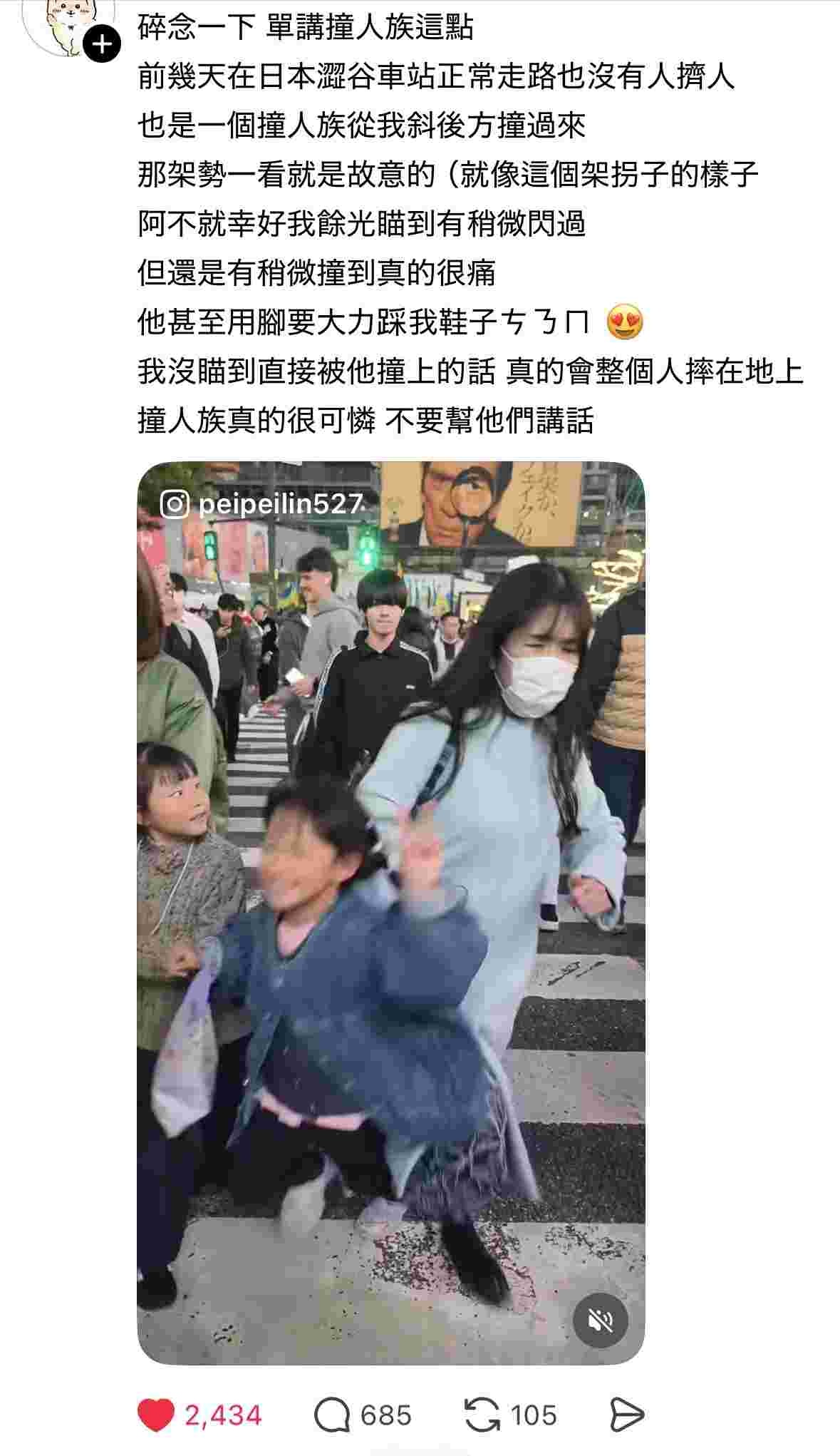 動画をアップロードした日本のアカウントは、少女を押したマスクをした女性が中国人に見えると主張しています。