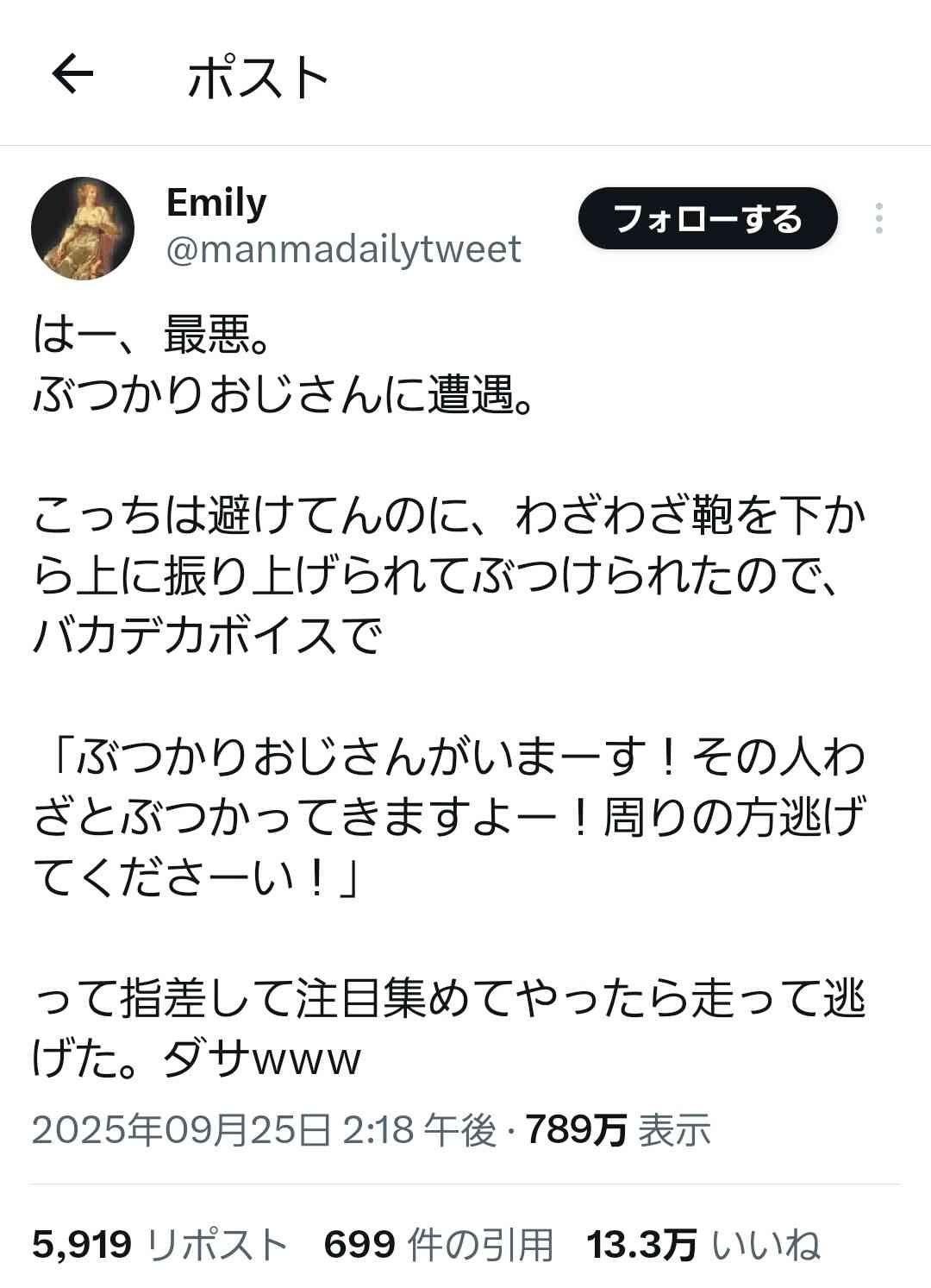日本人女「ぶつかりおじさんを成敗してやったwwwwwwwwwwwwww」