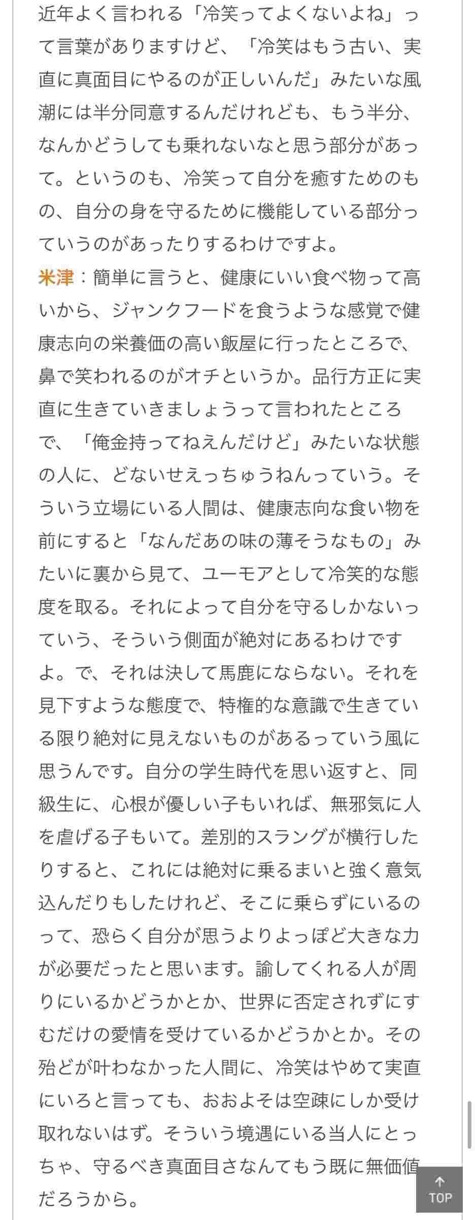 - 米津「要は冷笑してるやつは余裕のない底辺」