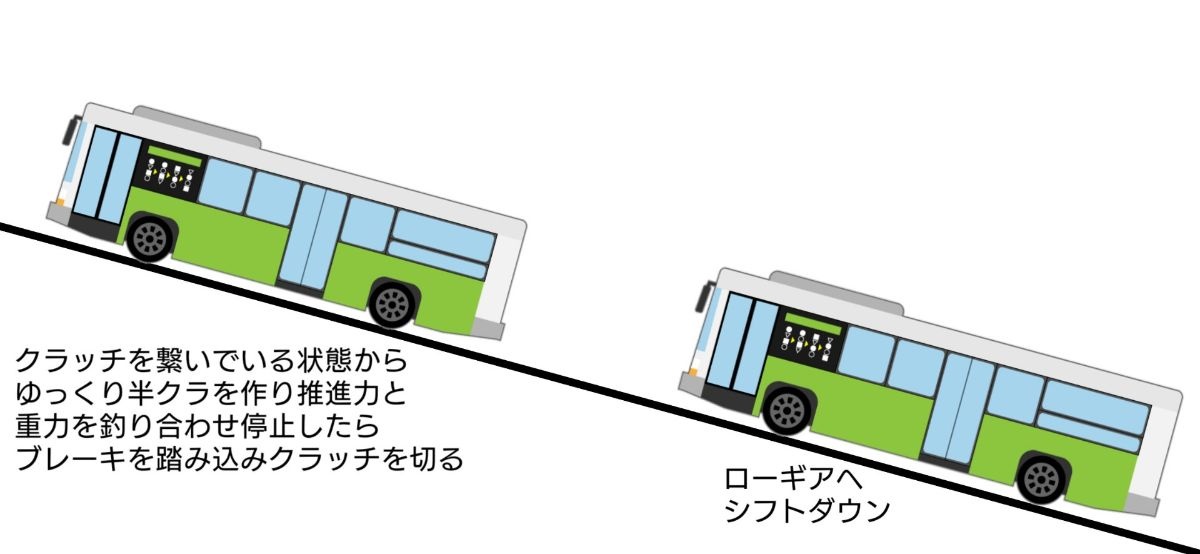 MT車の坂道発進を基準とした坂道停止の話なのになぜ下り坂が出てくるのか