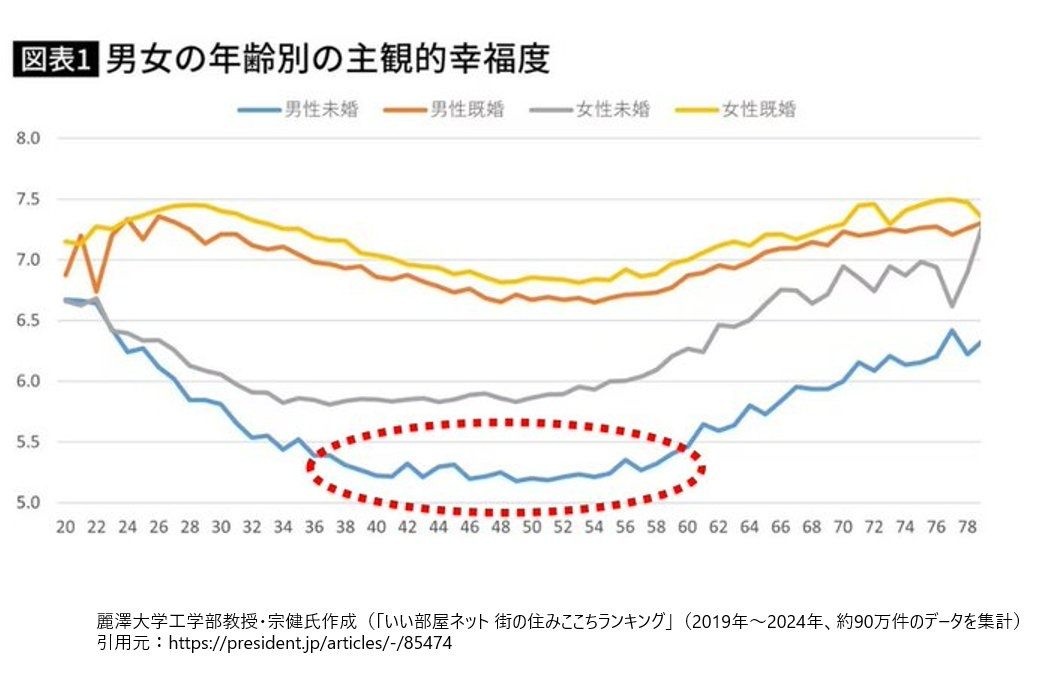 「中年未婚男性」、ガチで幸福度が低い