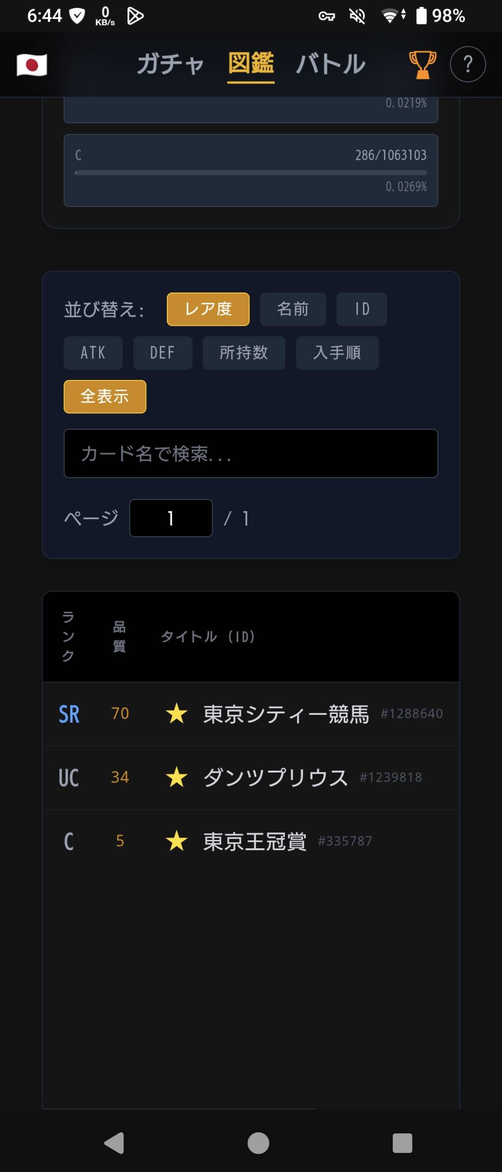 🟦[SR] 東京シティー競馬 ATK 0 / DEF 306